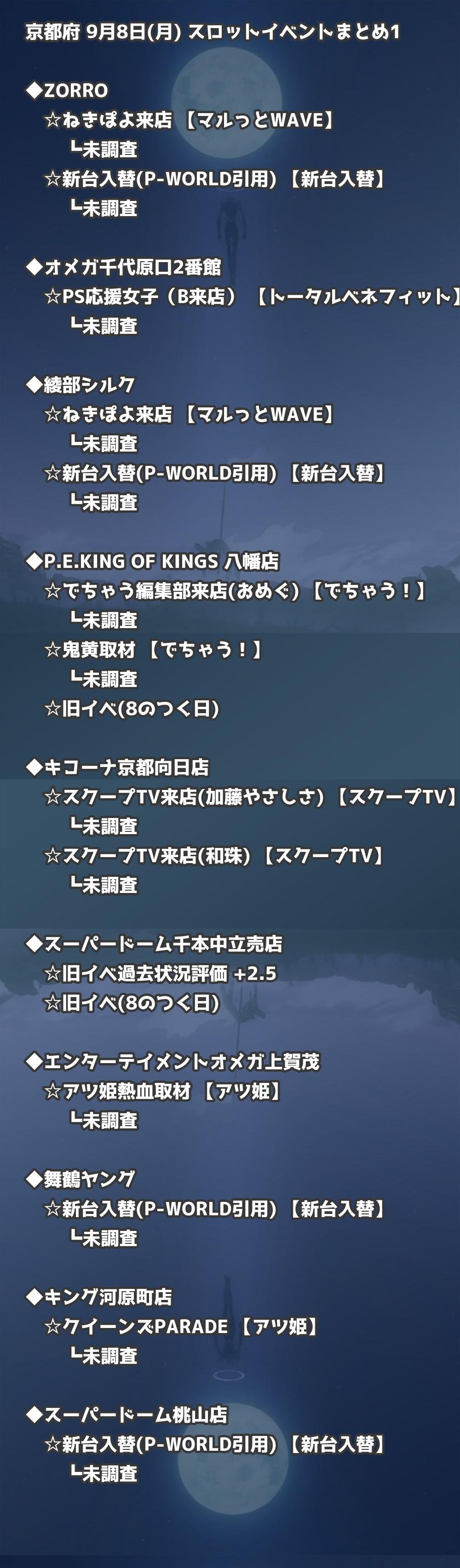 📊 京都府 9月8日(月) 勝てるパチンコ・スロット取材店舗一覧|おすすめ順