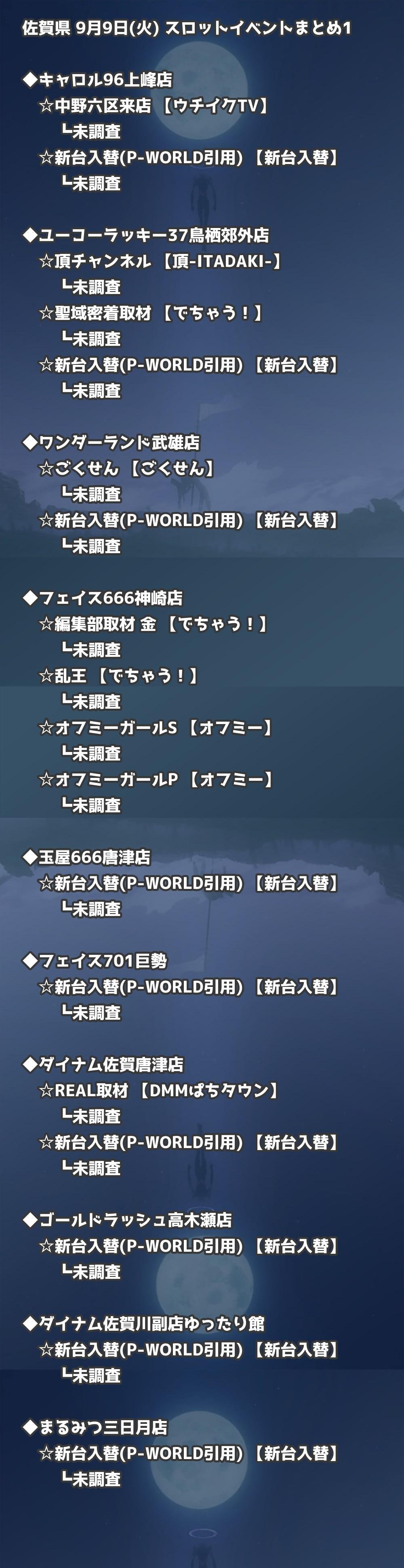 【佐賀県】9月9日(火) パチンコホールイベント取材まとめ記事です。