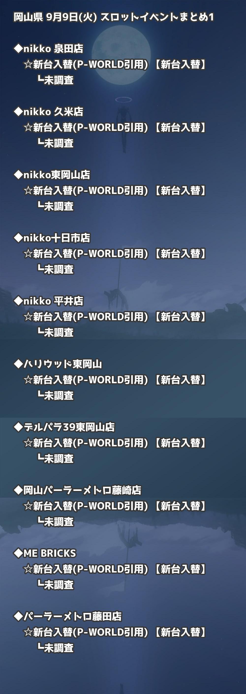 【岡山県】9月9日(火) パチンコホールイベント取材まとめ記事です。
