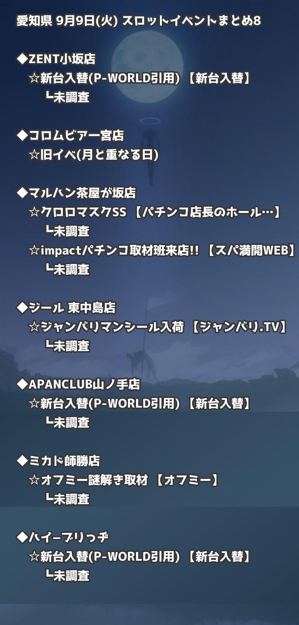 📊 愛知県 9月9日(火) 勝てるパチンコ・スロット取材店舗一覧|おすすめ順