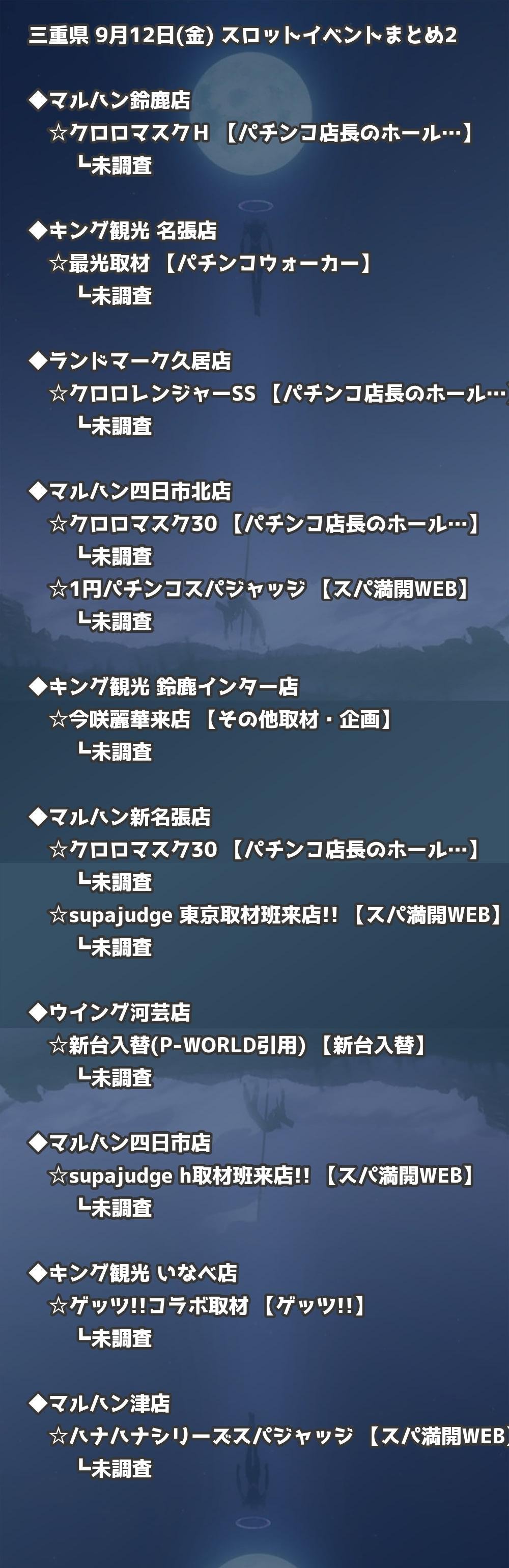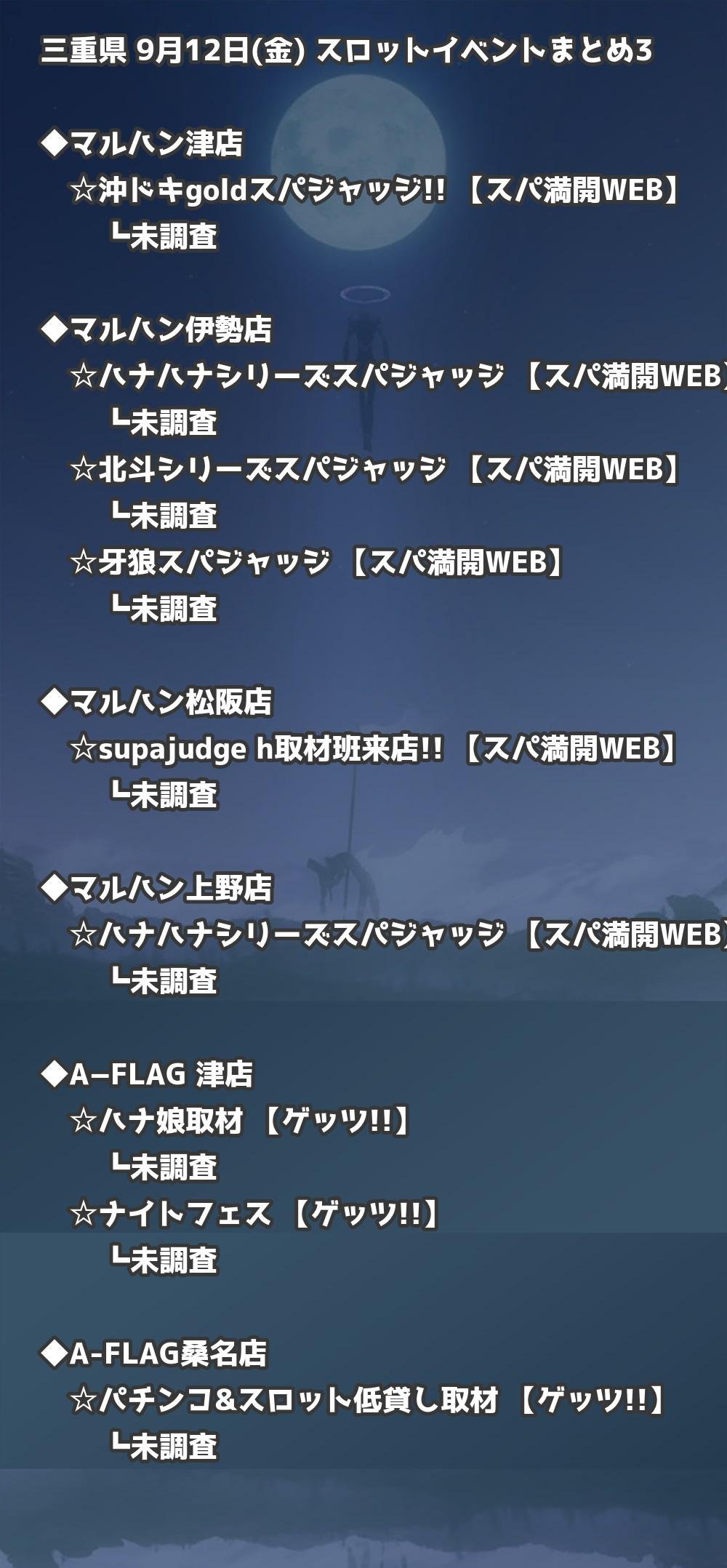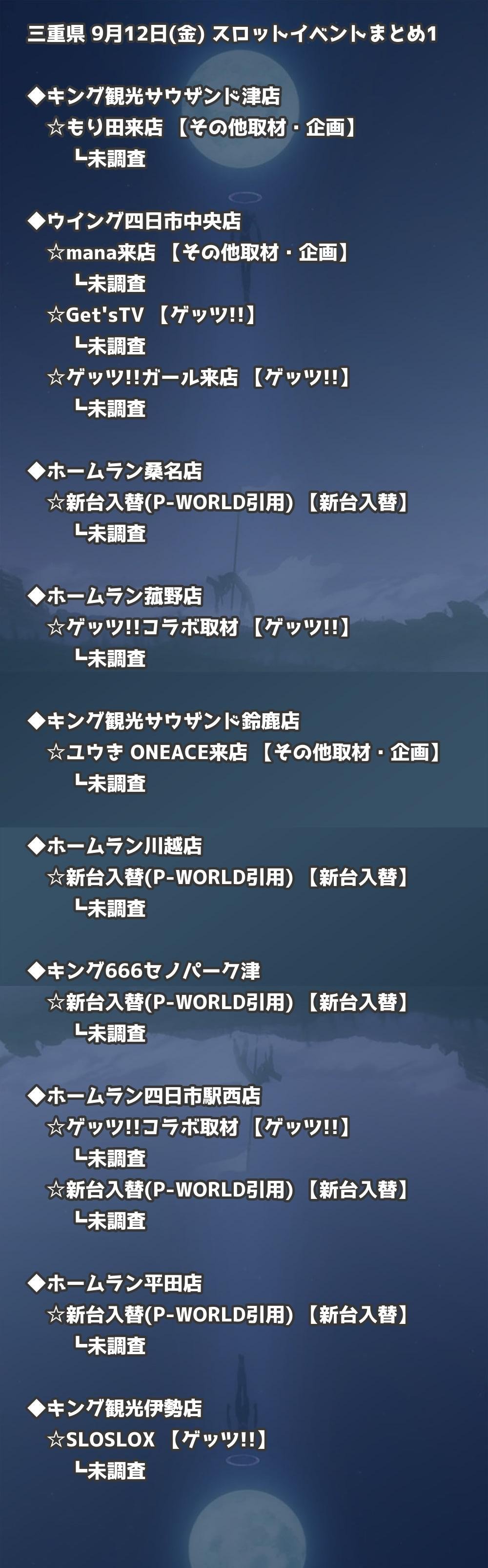 📊 三重県 9月12日(金) 勝てるパチンコ・スロット取材店舗一覧|おすすめ順