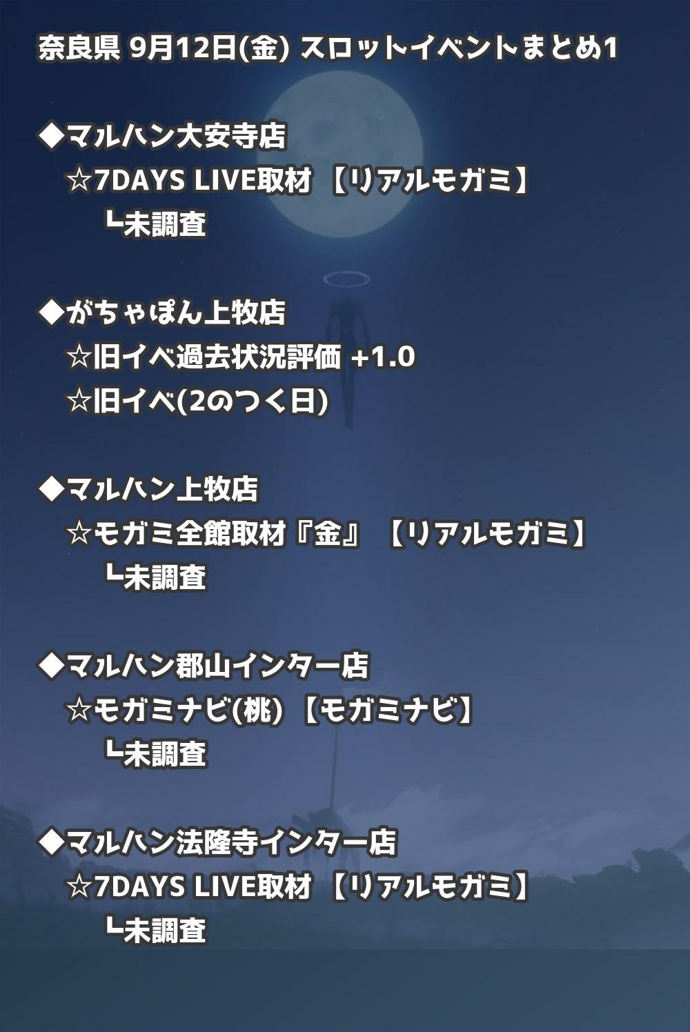 【奈良県】9月12日(金) パチンコホールイベント取材まとめ記事です。