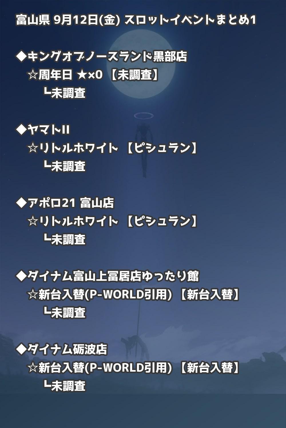 【富山県】9月12日(金) パチンコホールイベント取材まとめ記事です。