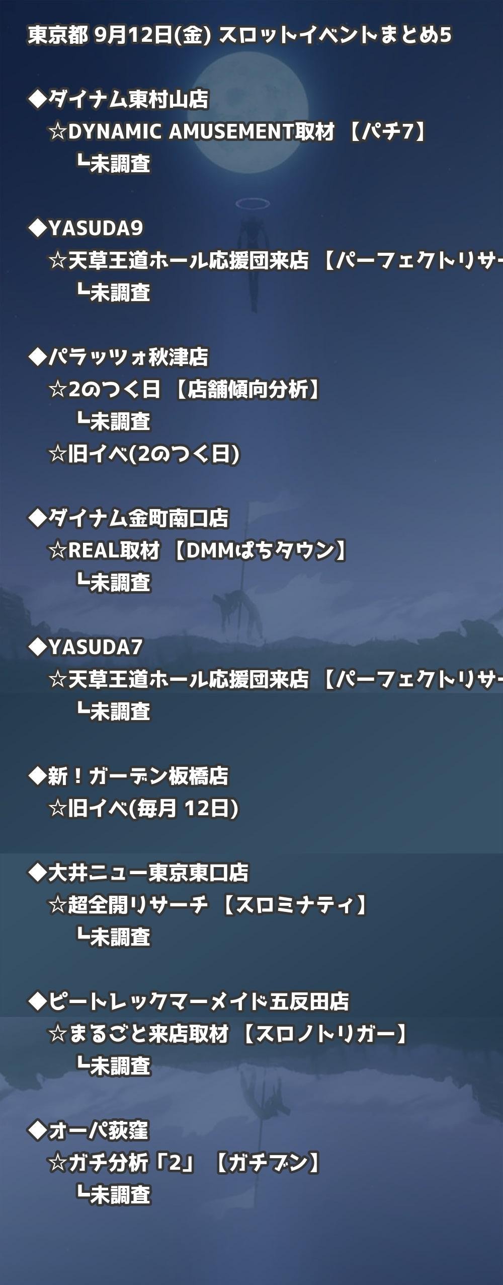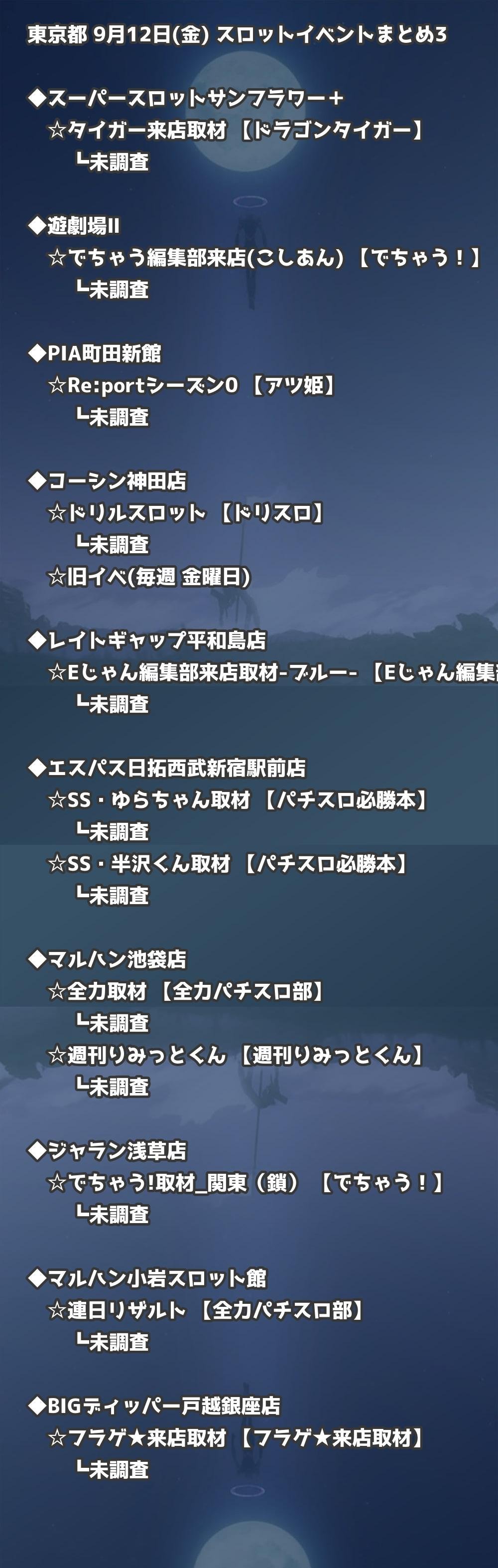 📊 東京都 9月12日(金) 勝てるパチンコ・スロット取材店舗一覧|おすすめ順