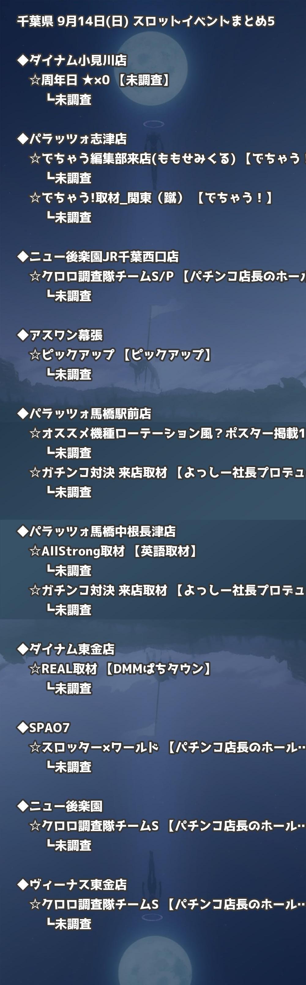📊 千葉県 9月14日(日) 勝てるパチンコ・スロット取材店舗一覧|おすすめ順