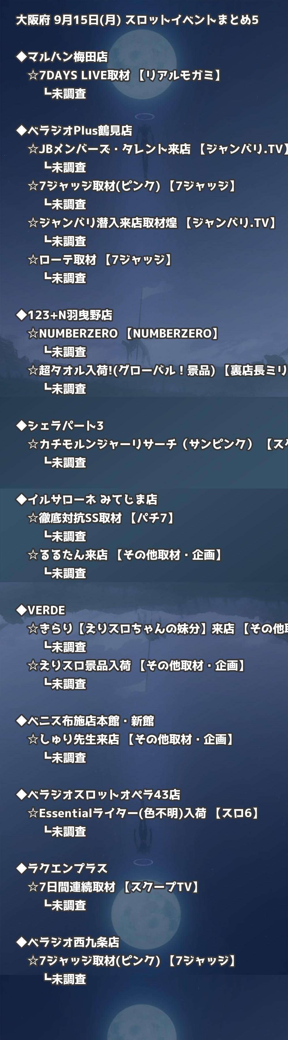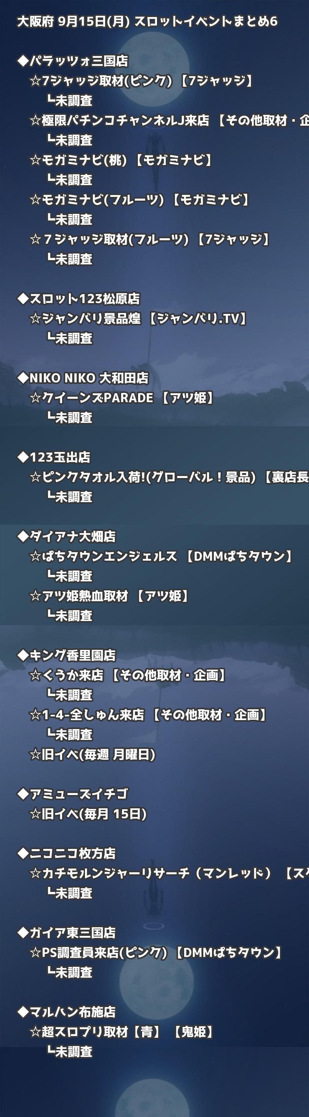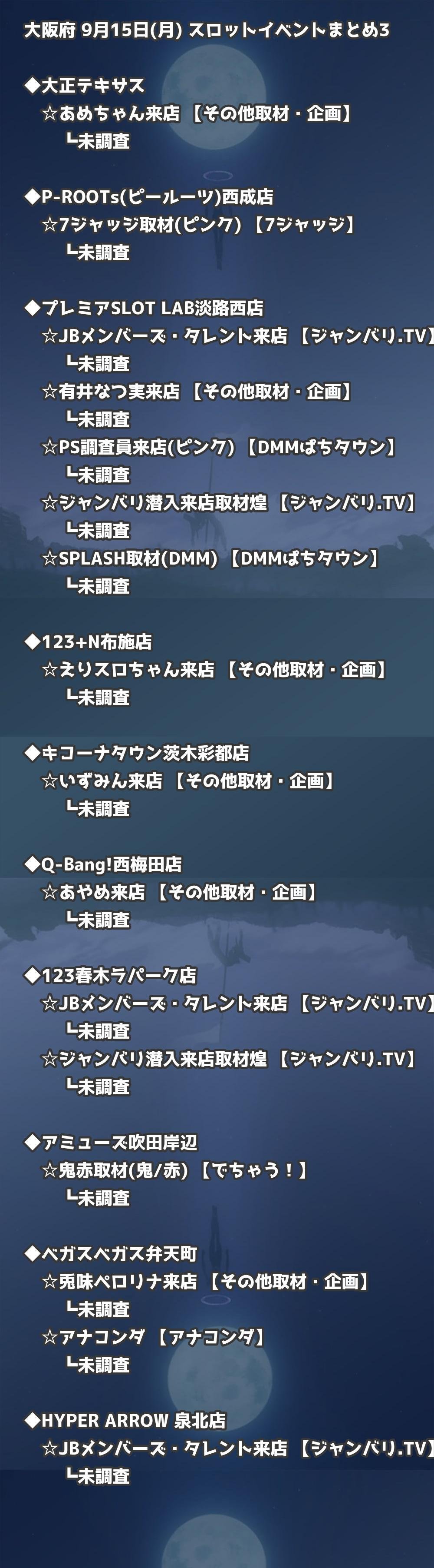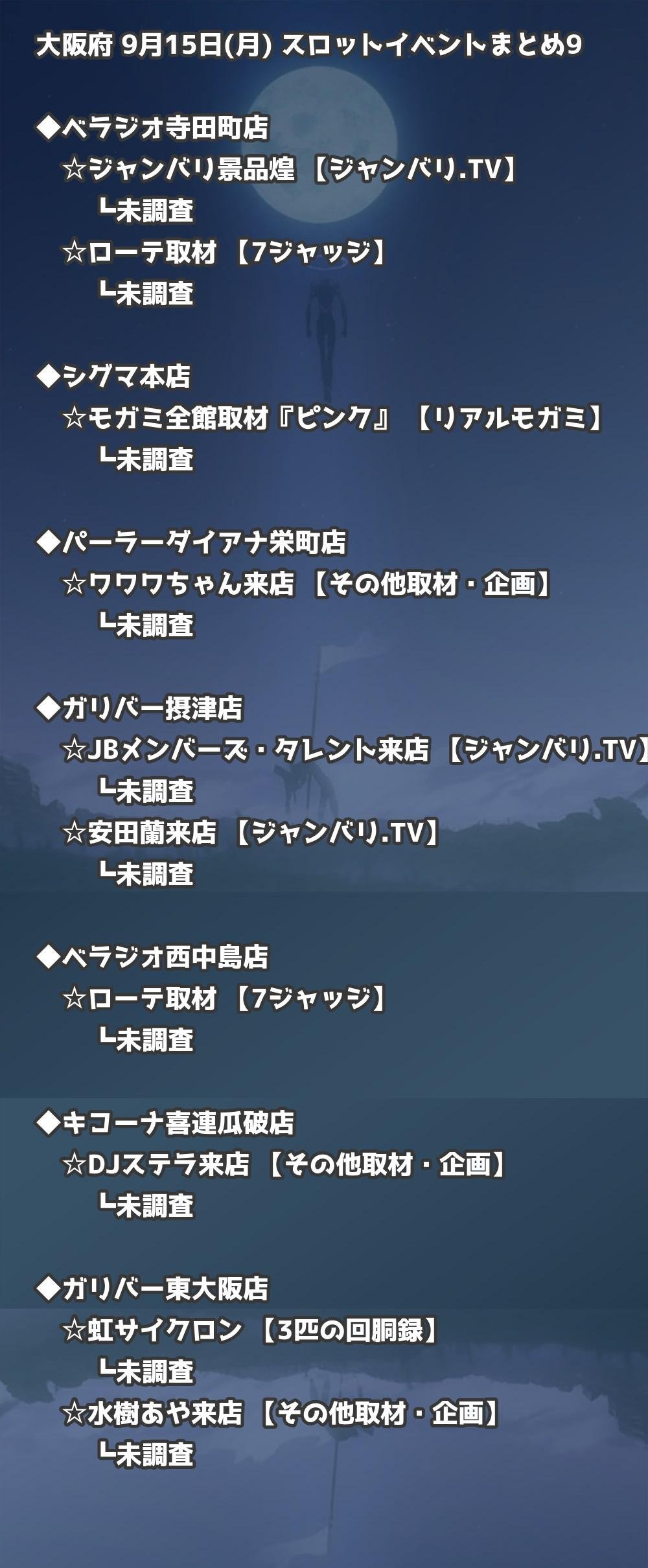 📊 大阪府 9月15日(月) 勝てるパチンコ・スロット取材店舗一覧|おすすめ順