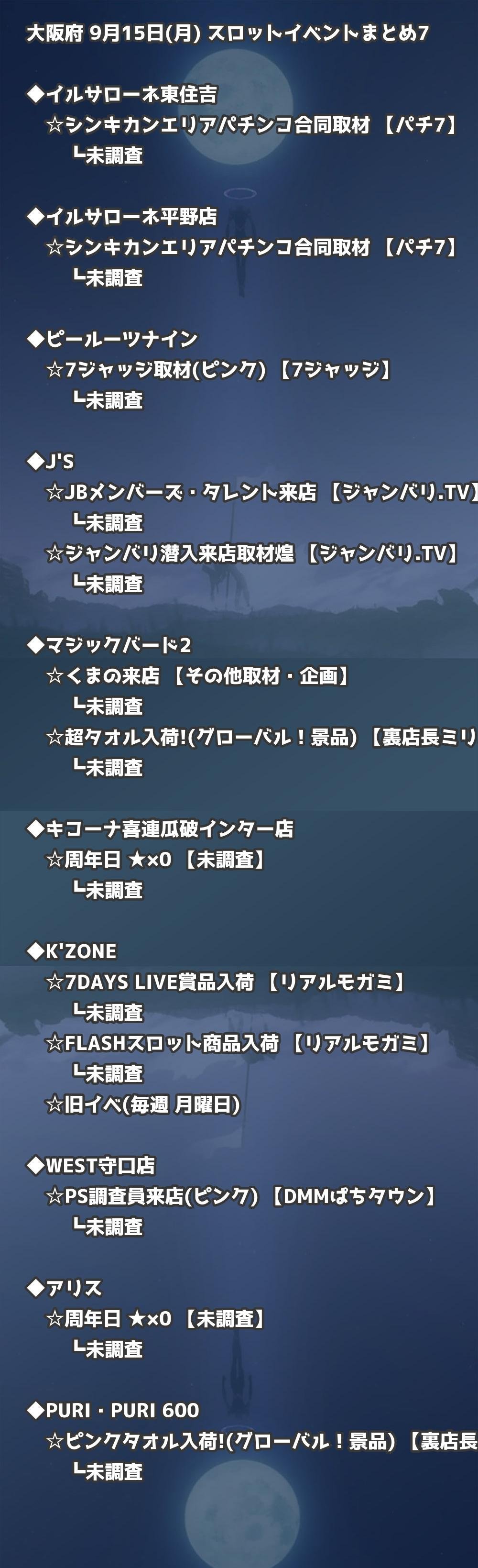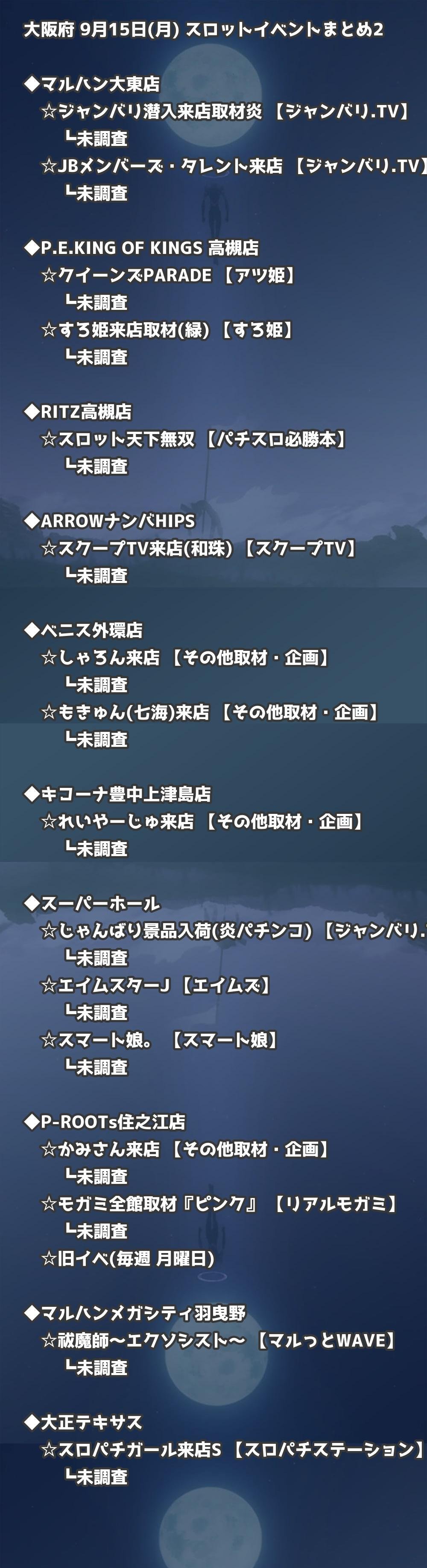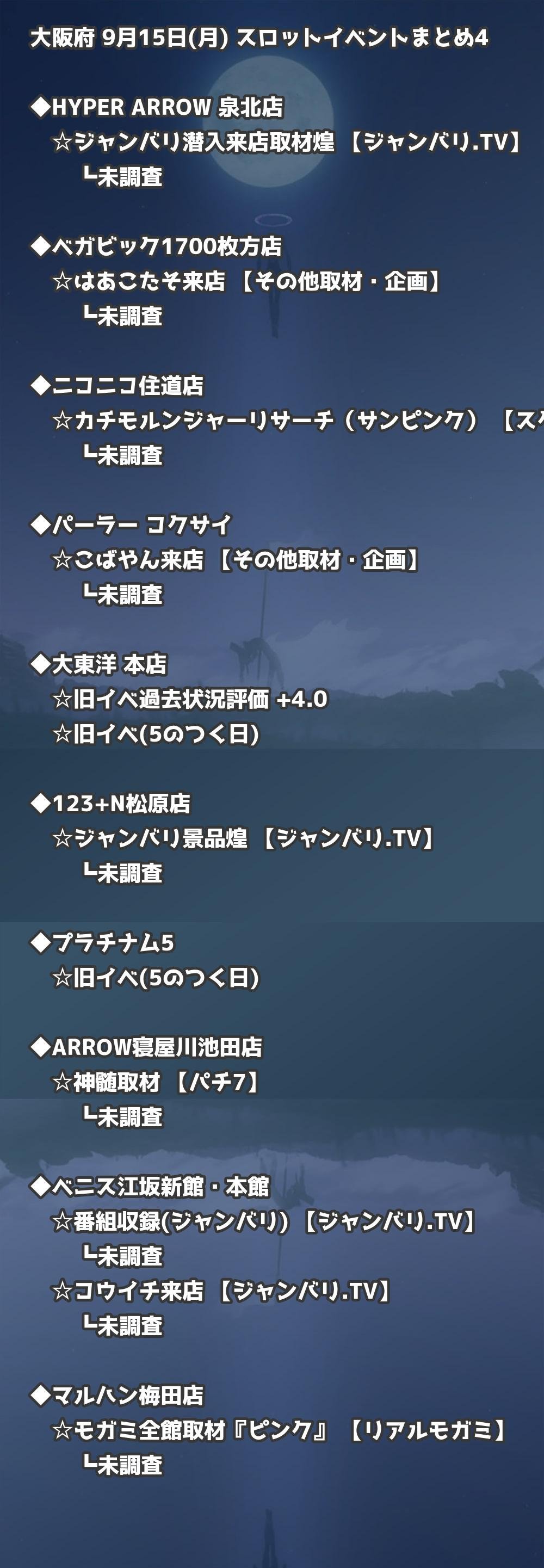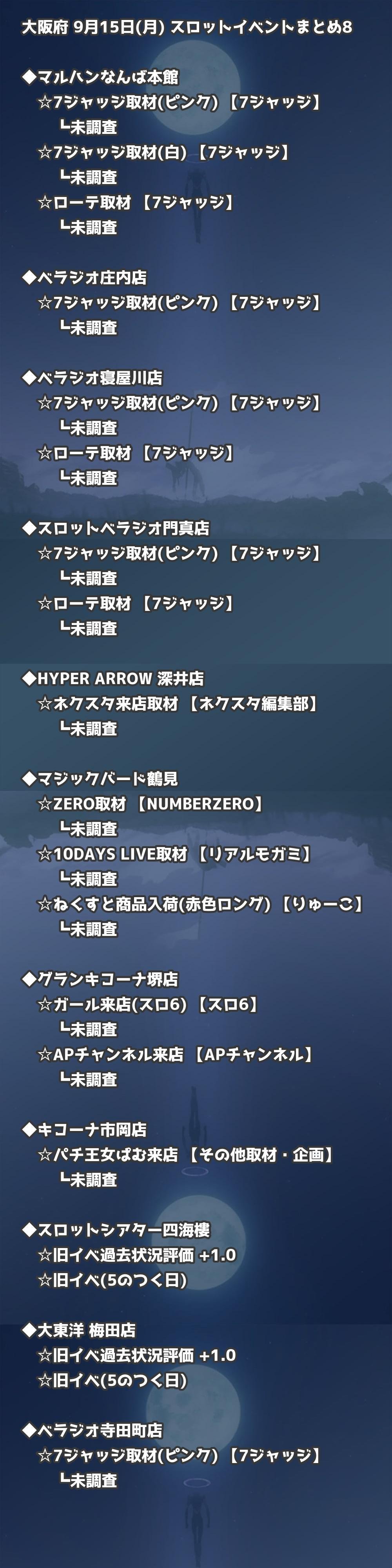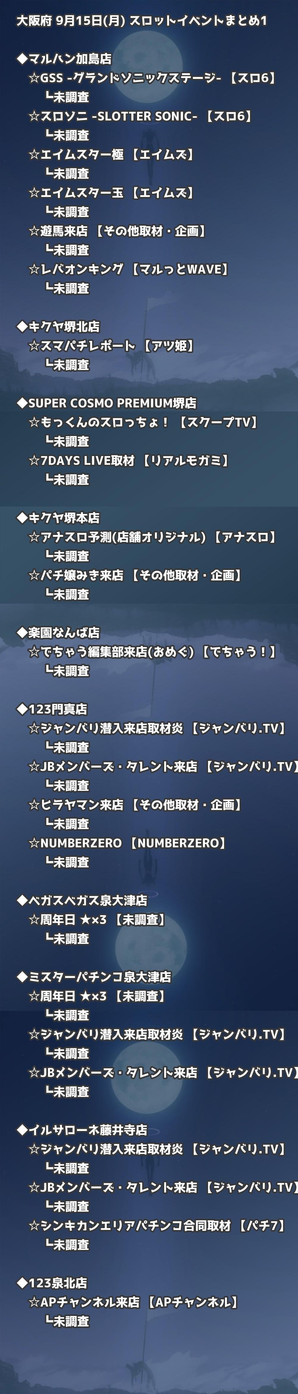 📊 大阪府 9月15日(月) 勝てるパチンコ・スロット取材店舗一覧|おすすめ順