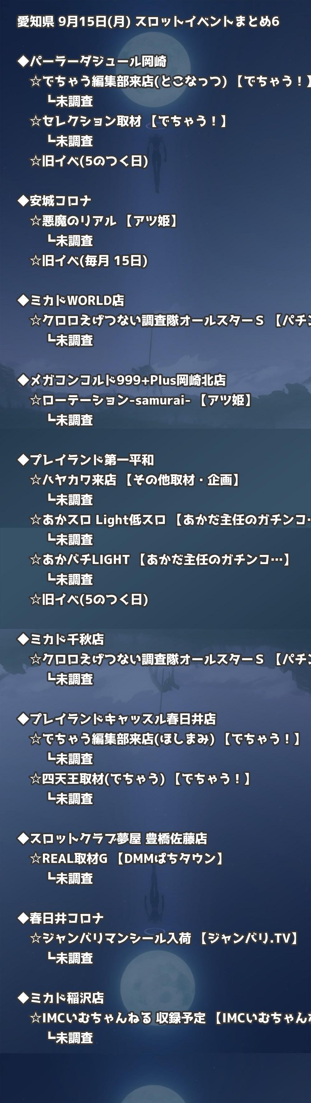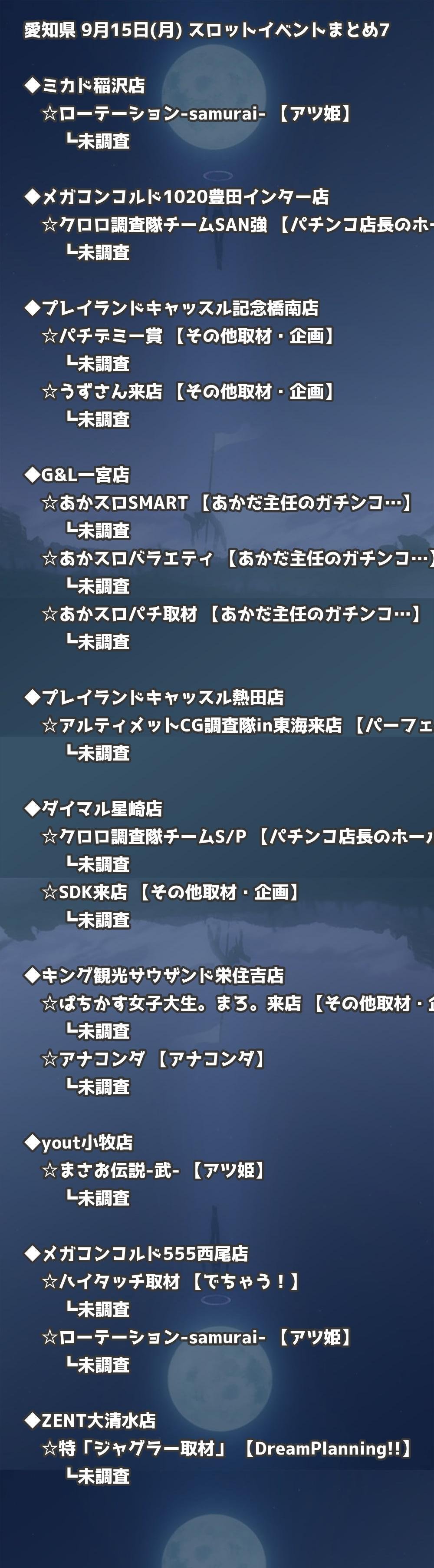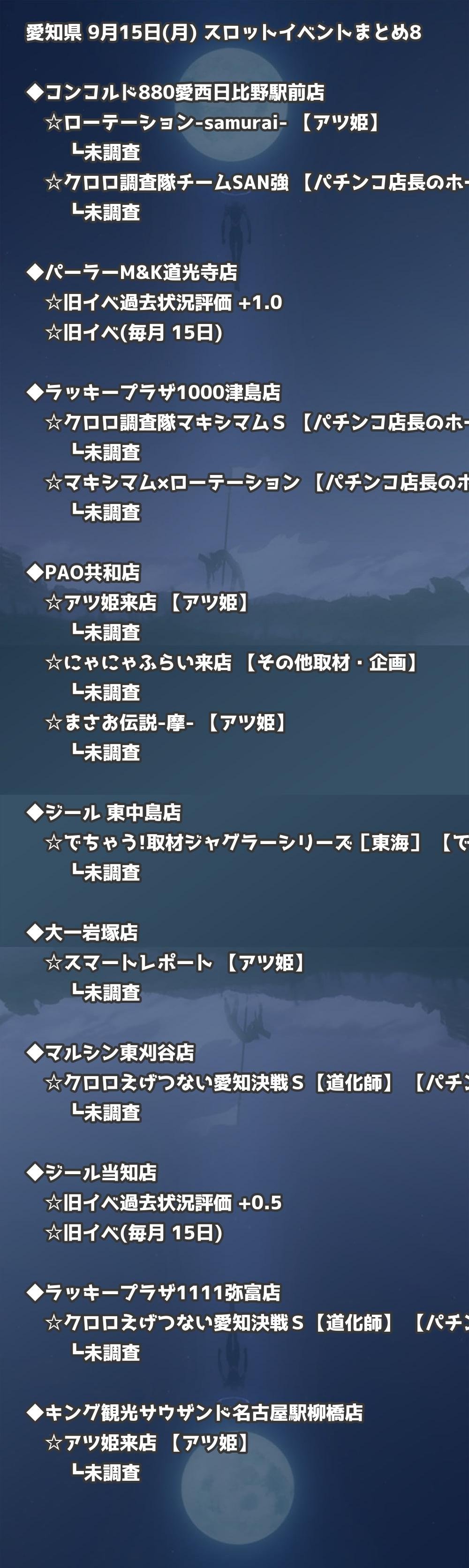 📊 愛知県 9月15日(月) 勝てるパチンコ・スロット取材店舗一覧|おすすめ順