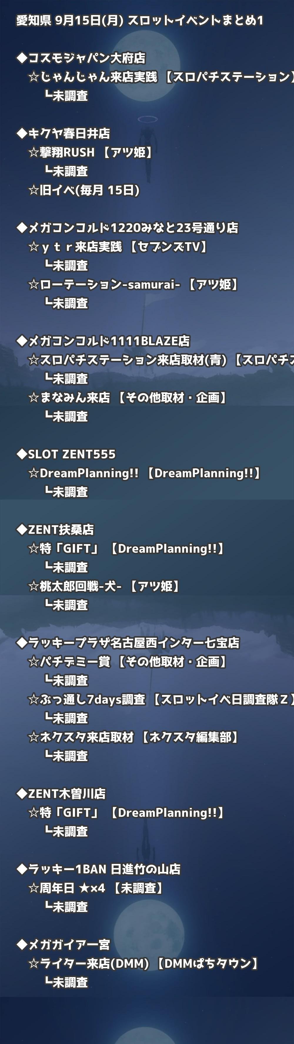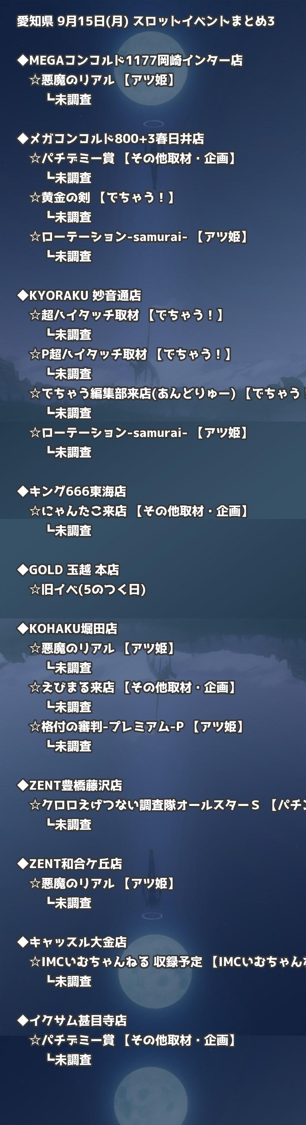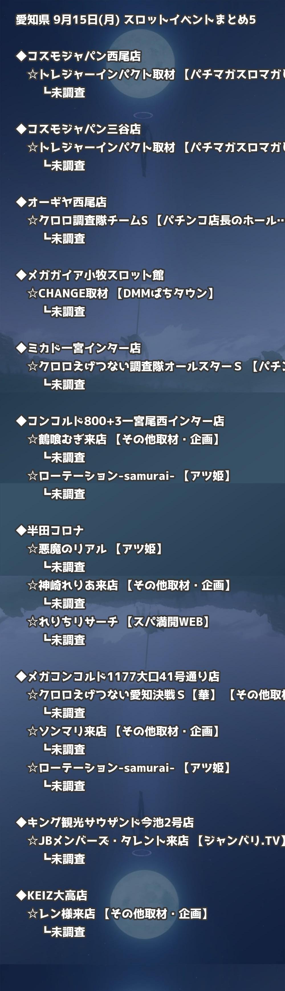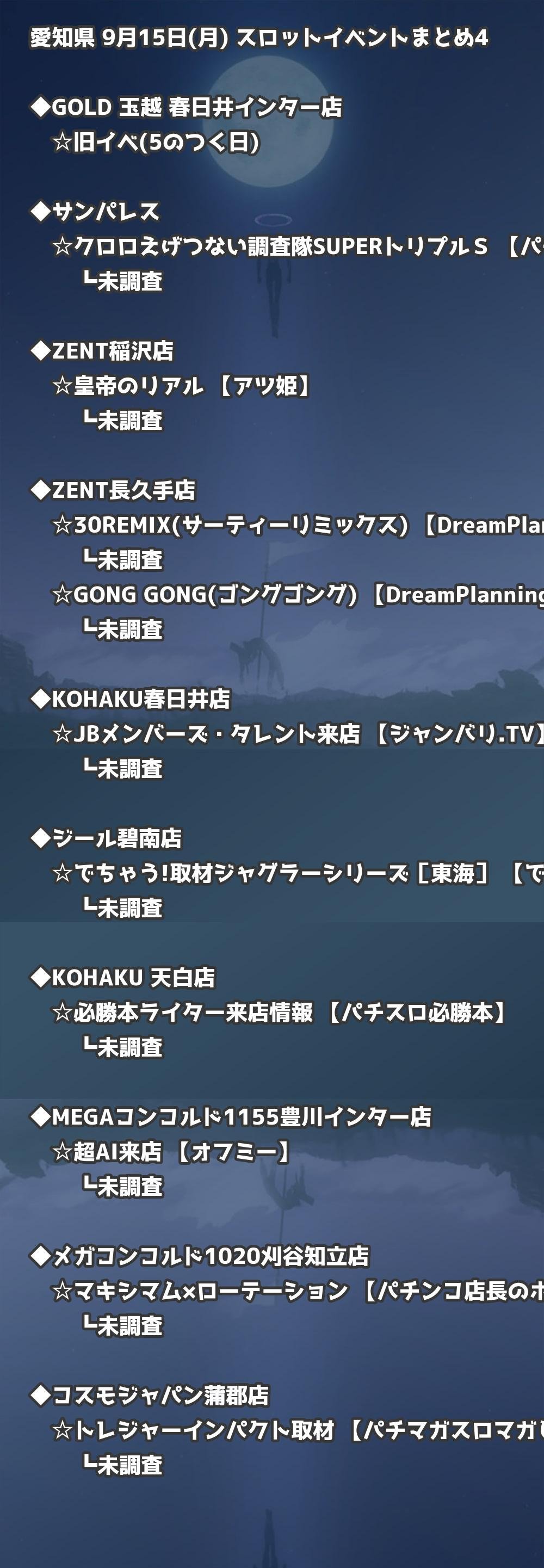 📊 愛知県 9月15日(月) 勝てるパチンコ・スロット取材店舗一覧|おすすめ順
