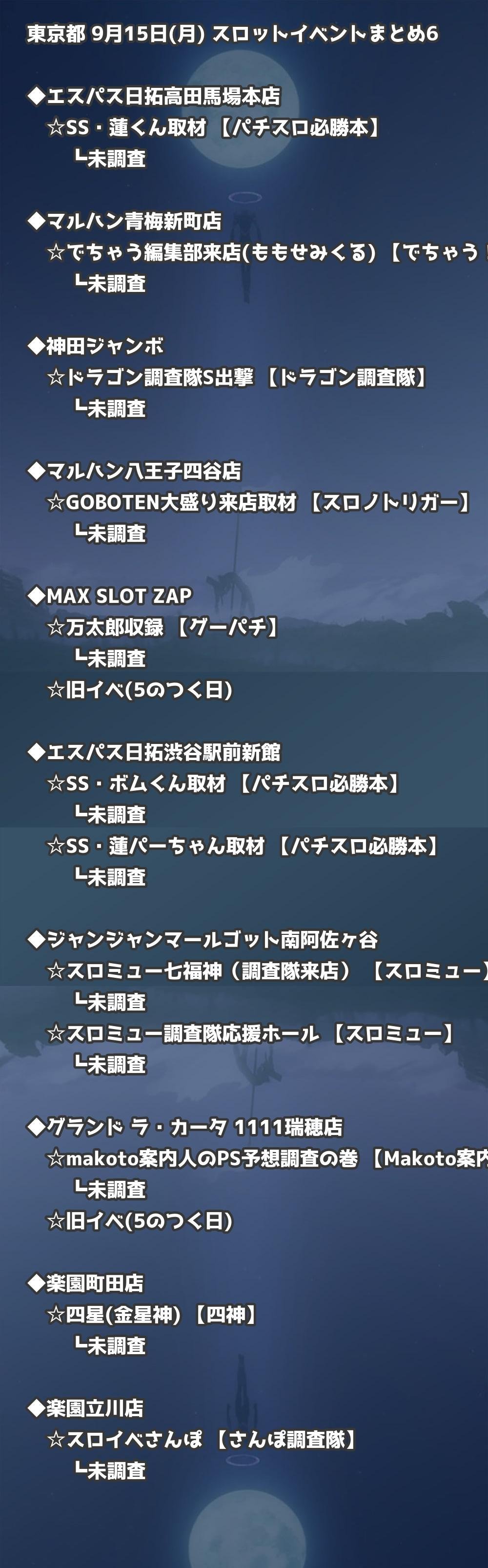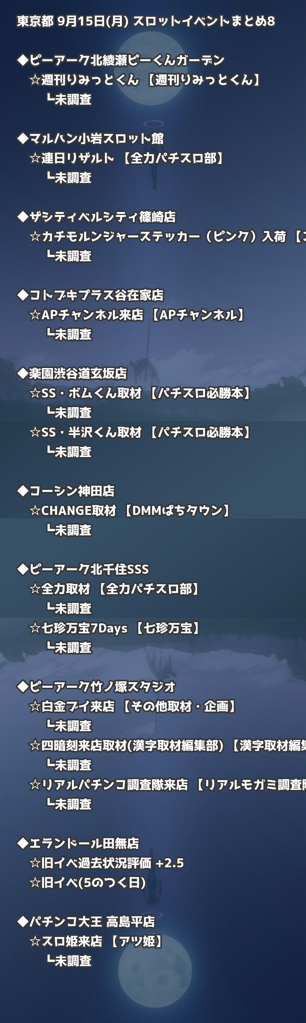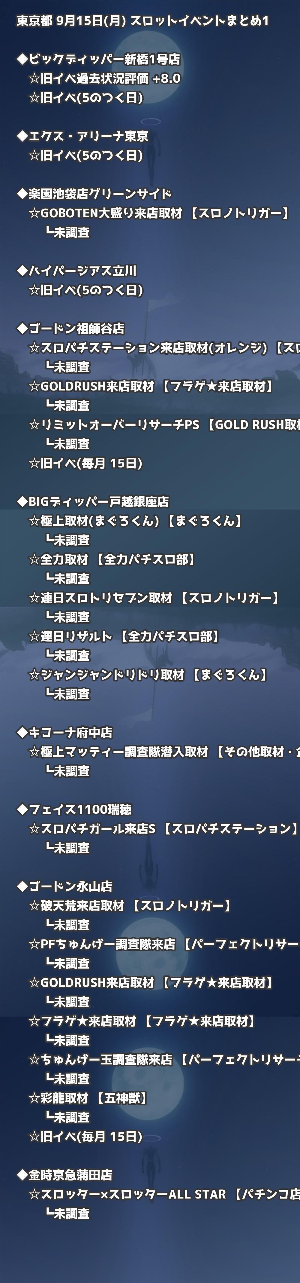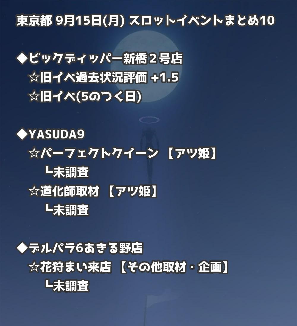 📊 東京都 9月15日(月) 勝てるパチンコ・スロット取材店舗一覧|おすすめ順