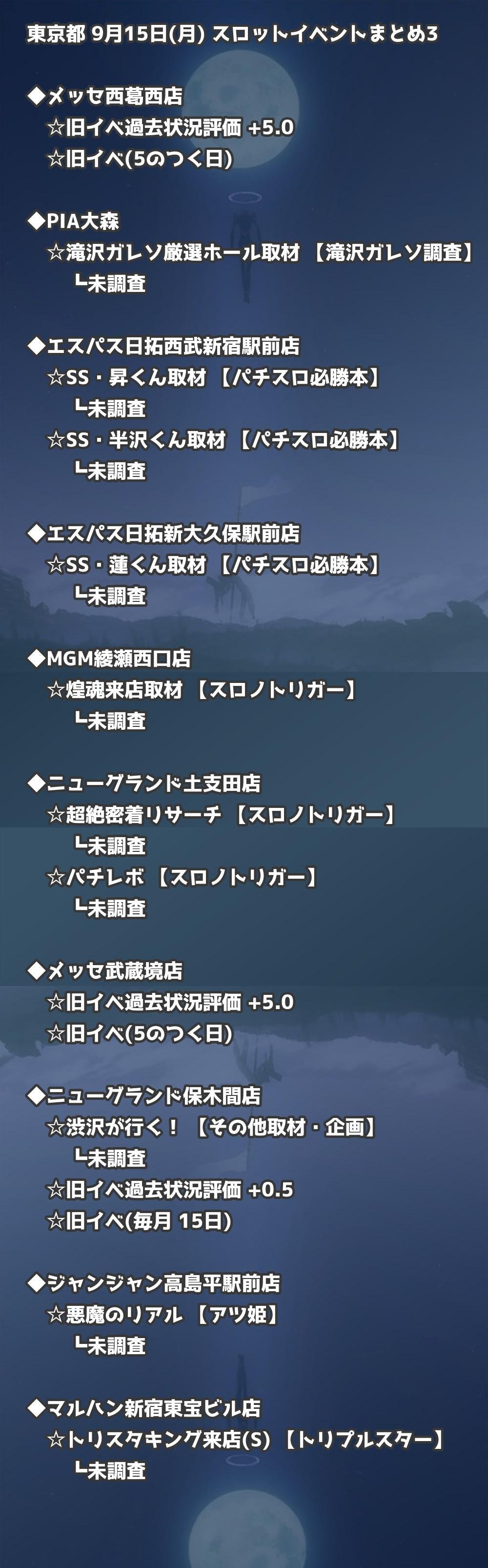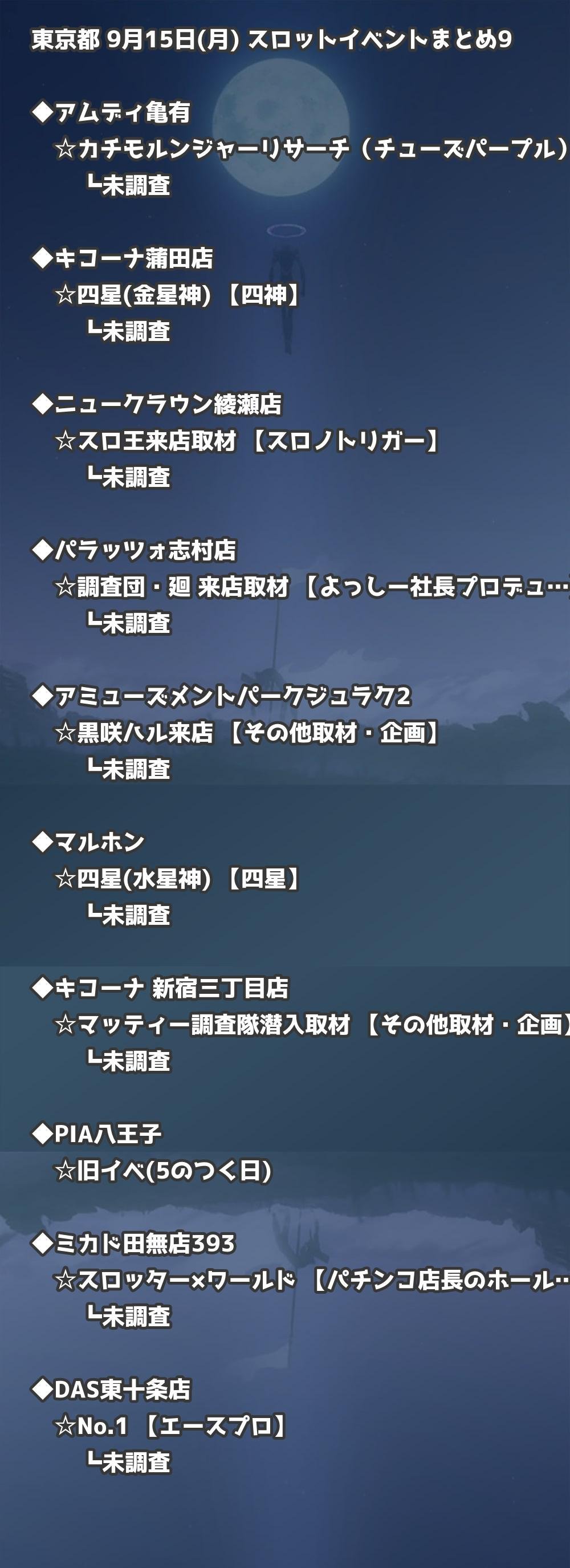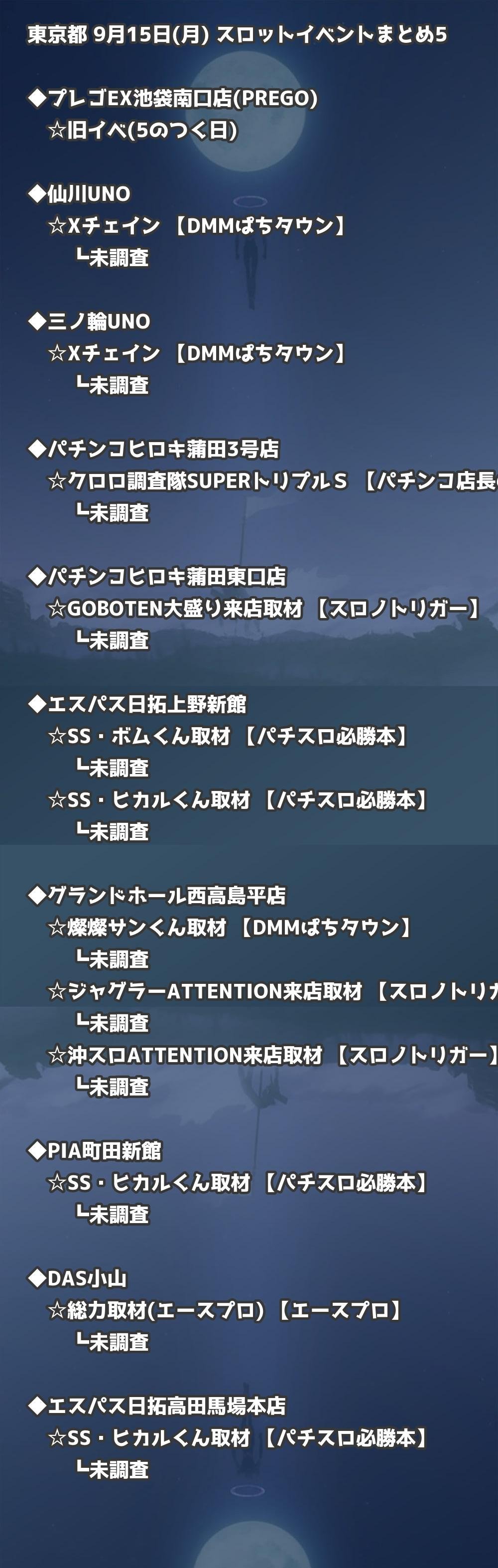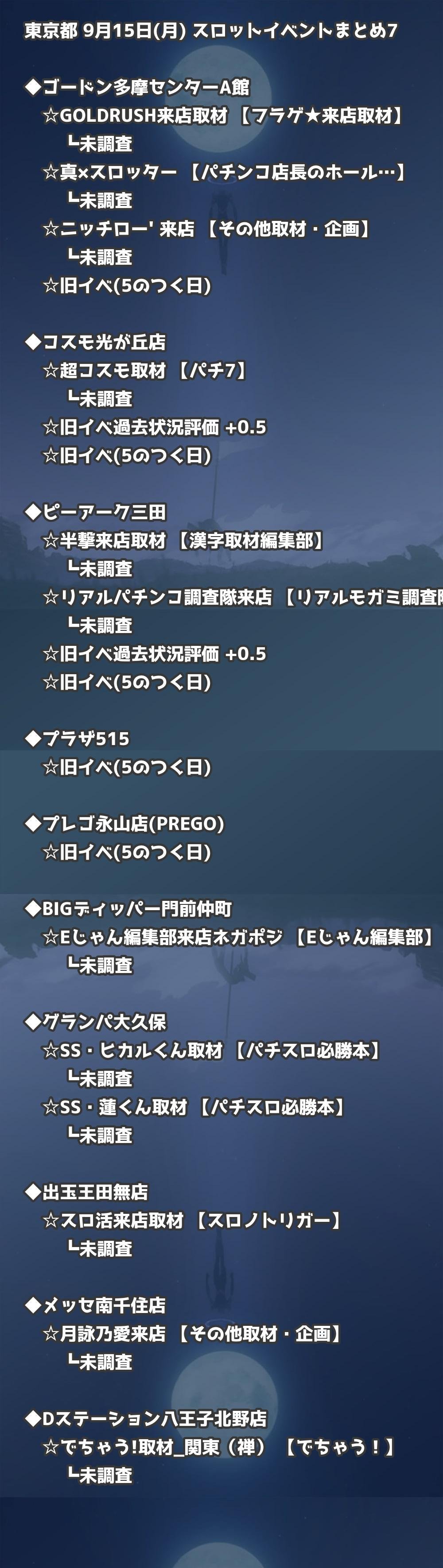 📊 東京都 9月15日(月) 勝てるパチンコ・スロット取材店舗一覧|おすすめ順