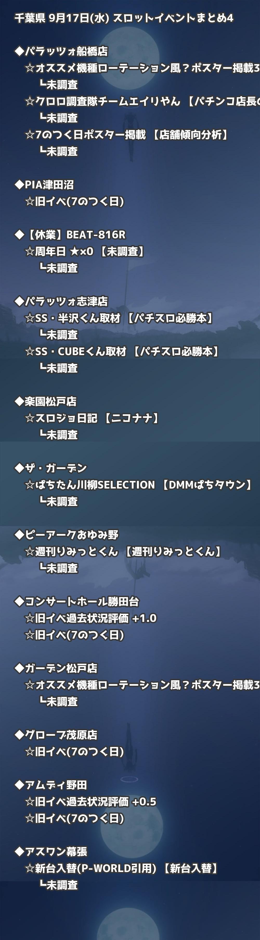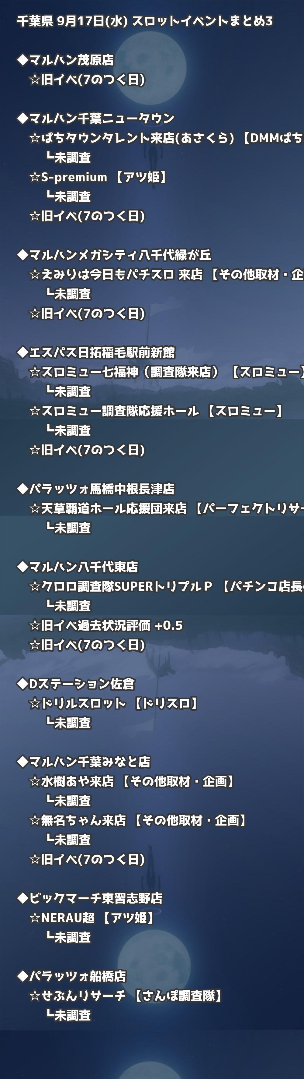📊 千葉県 9月17日(水) 勝てるパチンコ・スロット取材店舗一覧|おすすめ順