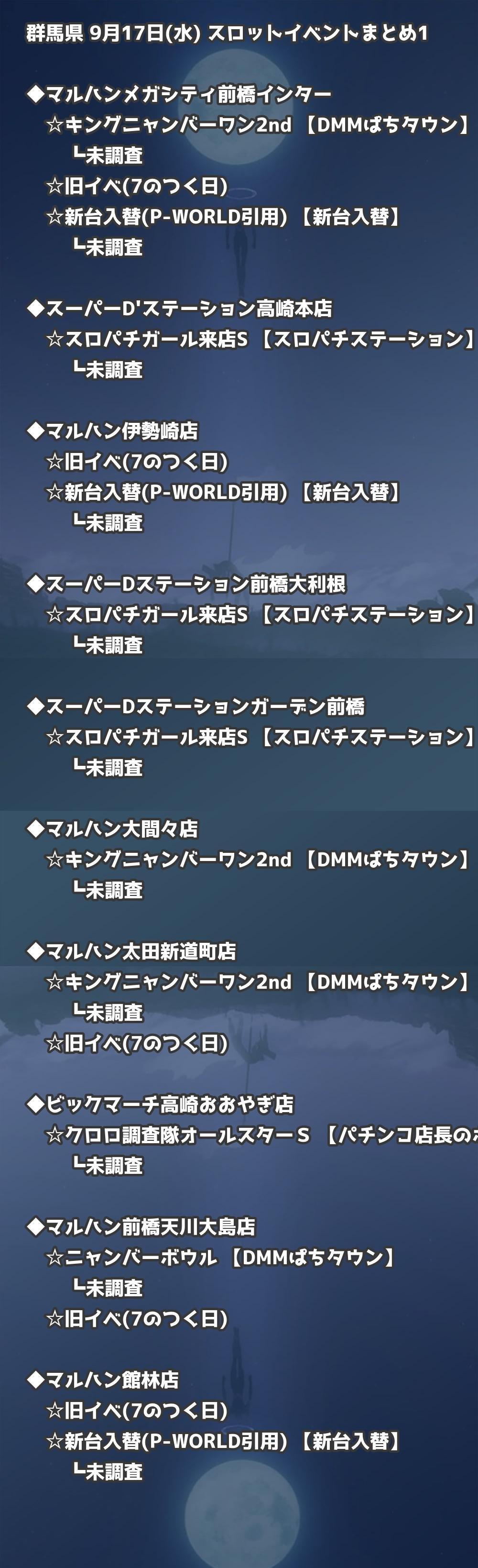 【群馬県】9月17日(水) パチンコホールイベント取材まとめ記事です。