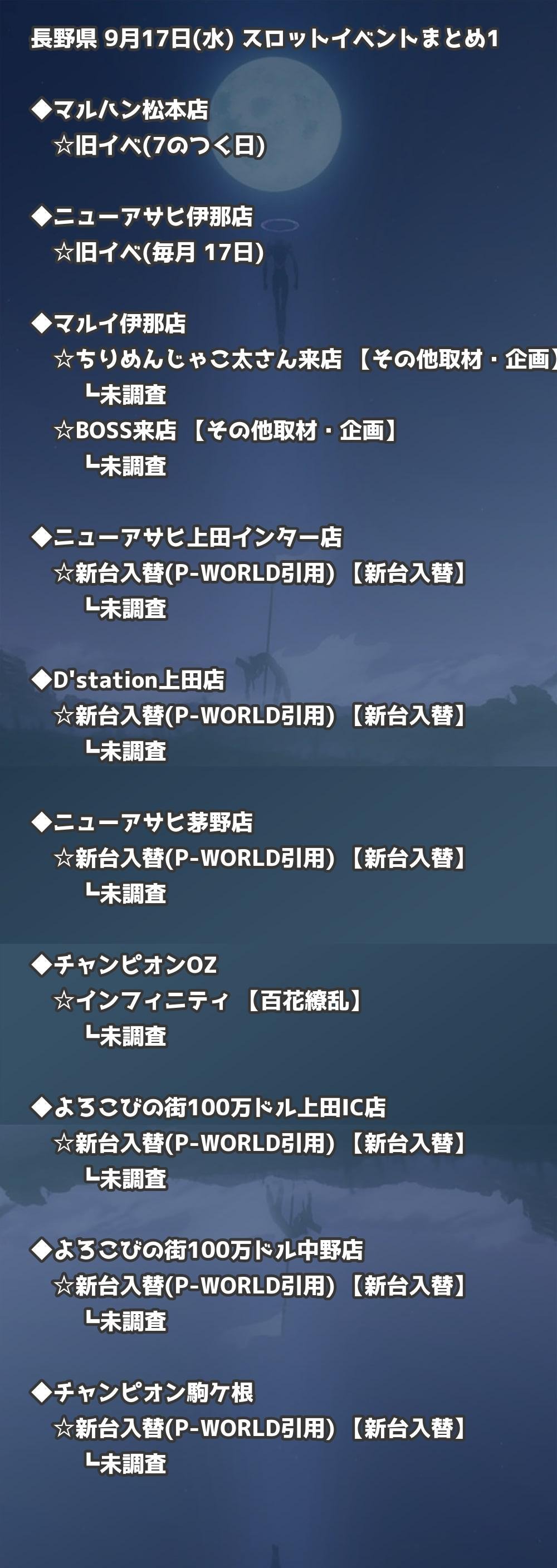 【長野県】9月17日(水) パチンコホールイベント取材まとめ記事です。