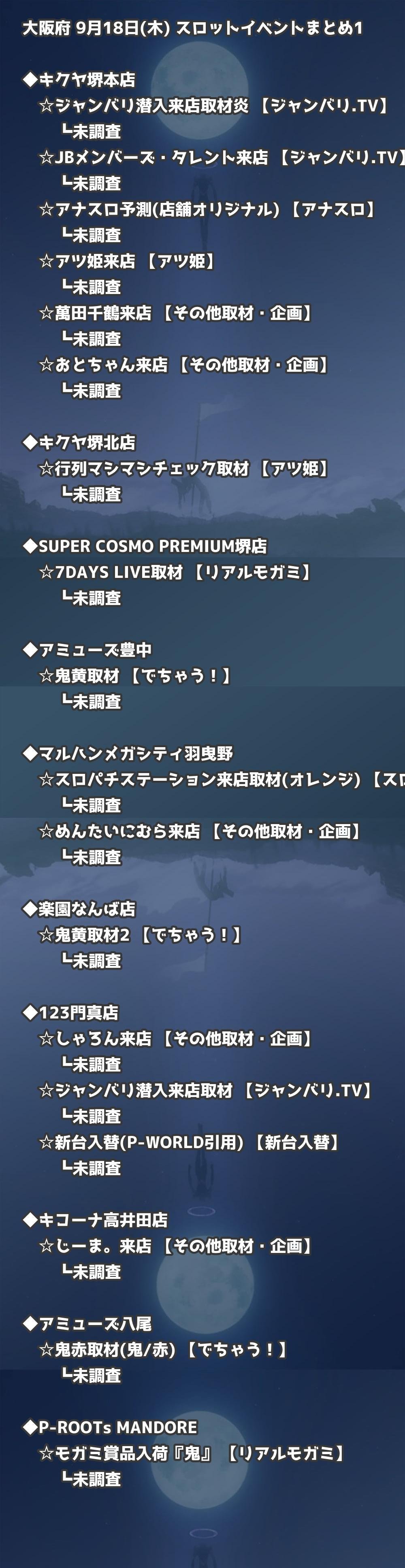 📊 大阪府 9月18日(木) 勝てるパチンコ・スロット取材店舗一覧|おすすめ順