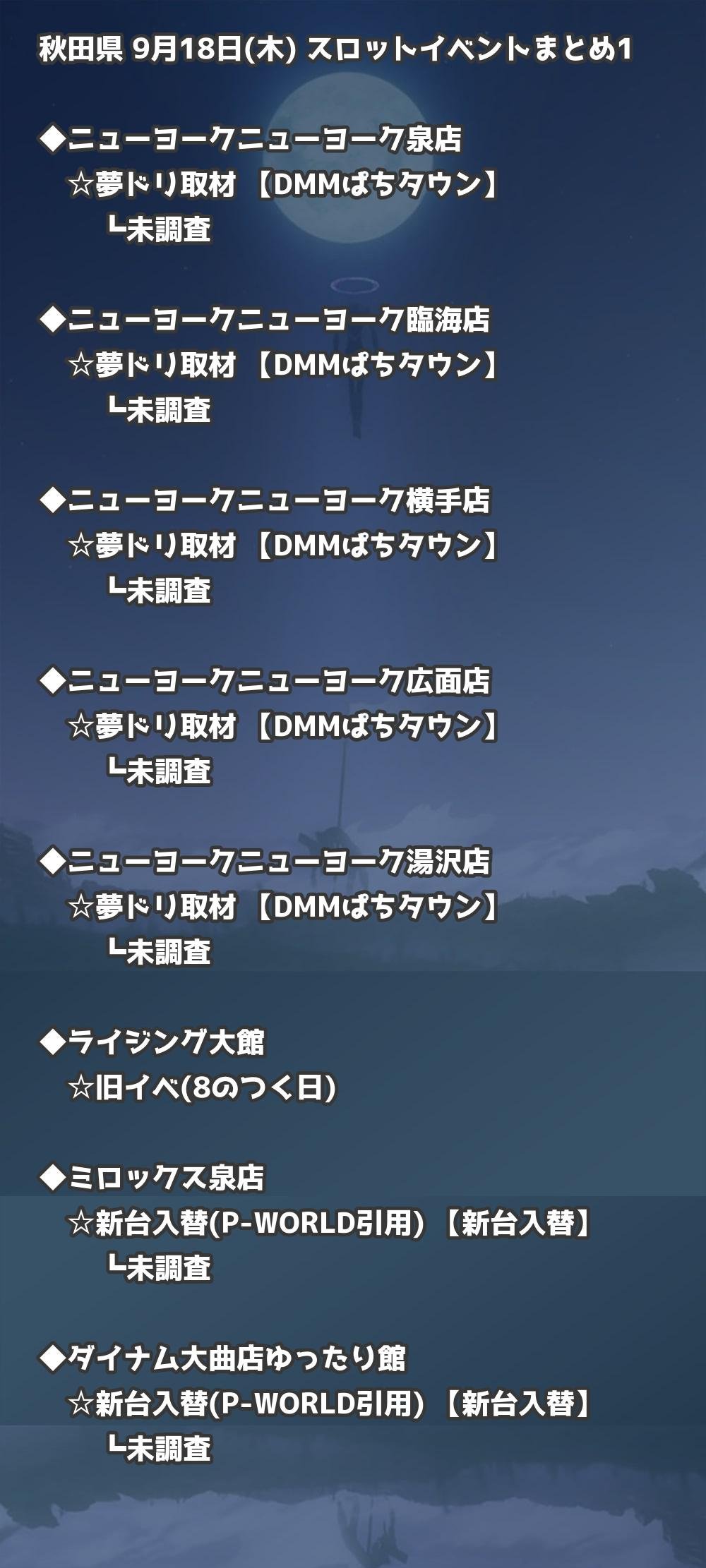 【秋田県】9月18日(木) パチンコホールイベント取材まとめ記事です。