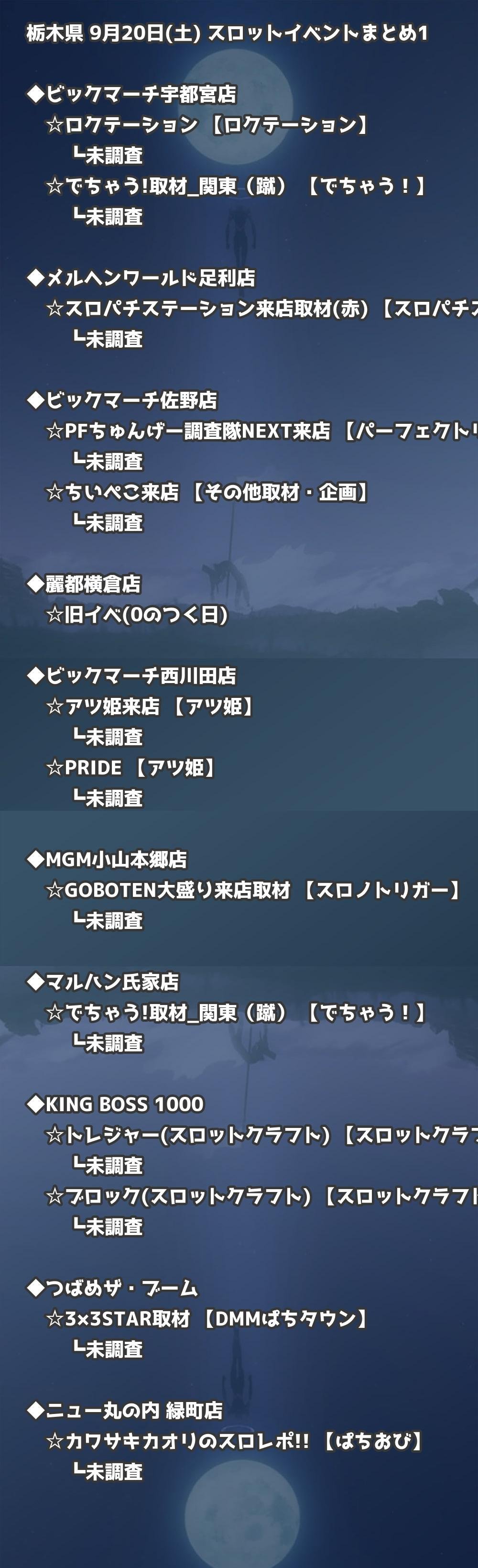 栃木 9月20日(土) パチンコ取材|宇都宮・小山・足利情報まとめ