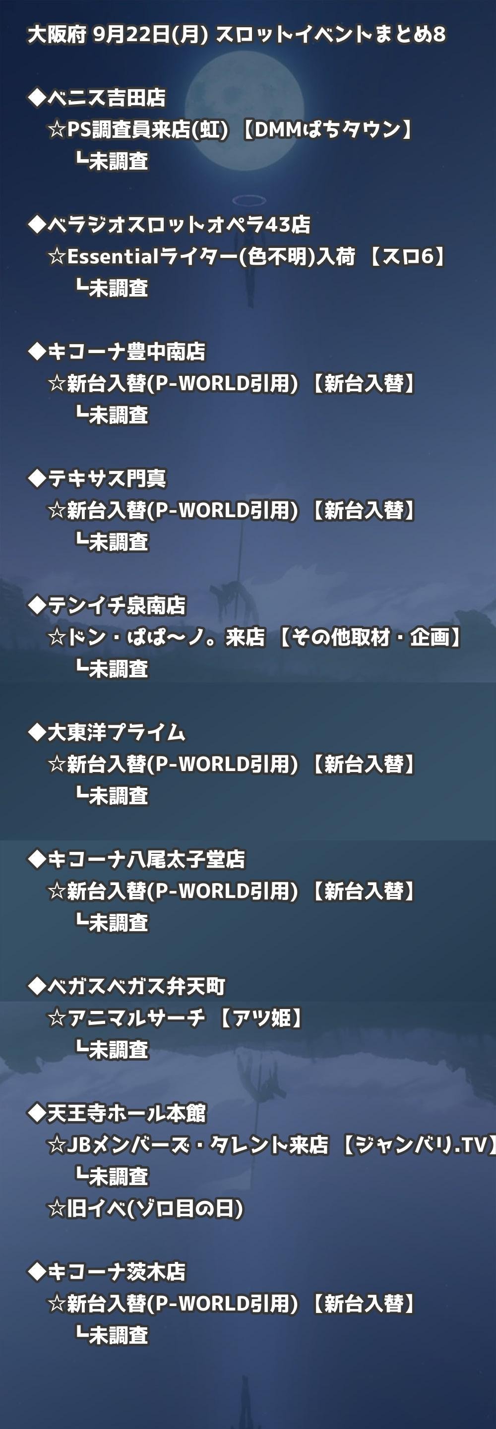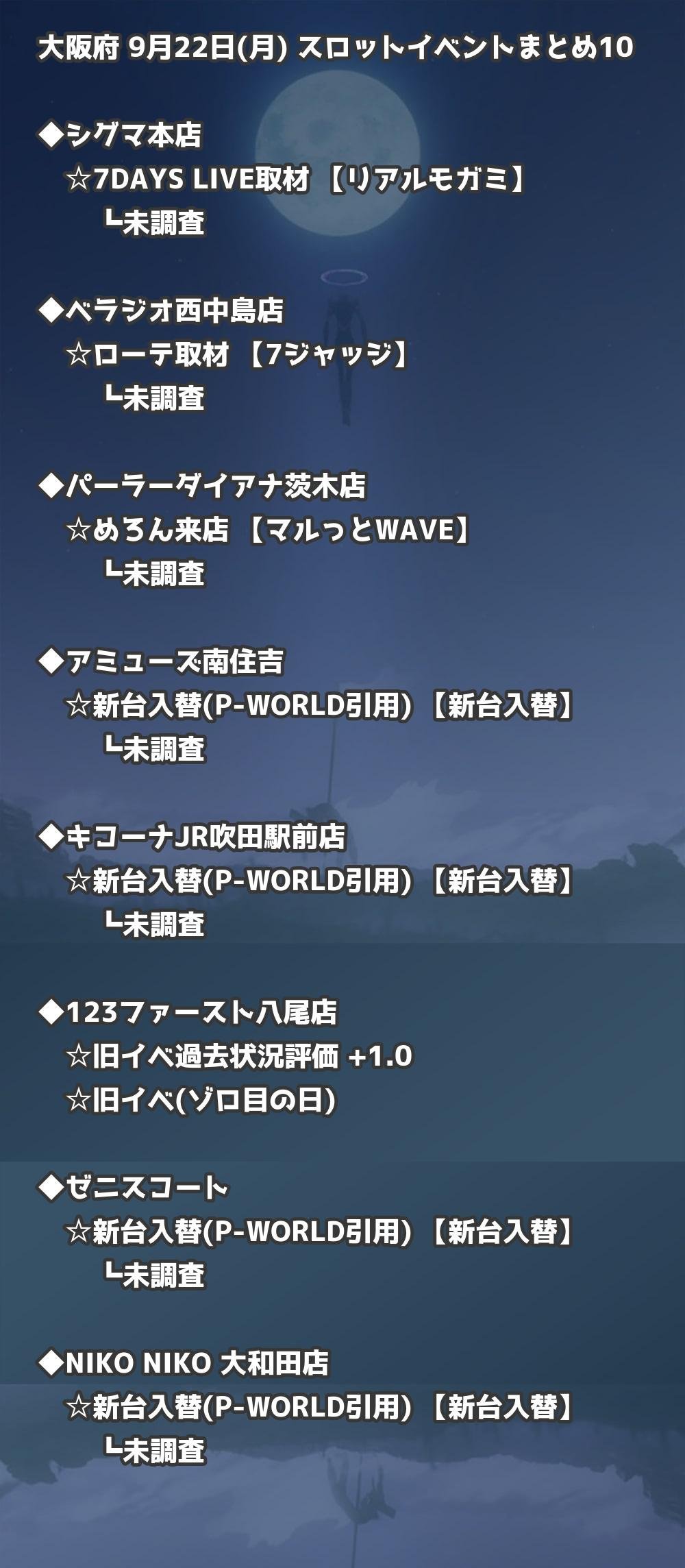 📊 大阪府 9月22日(月) 勝てるパチンコ・スロット取材店舗一覧|おすすめ順