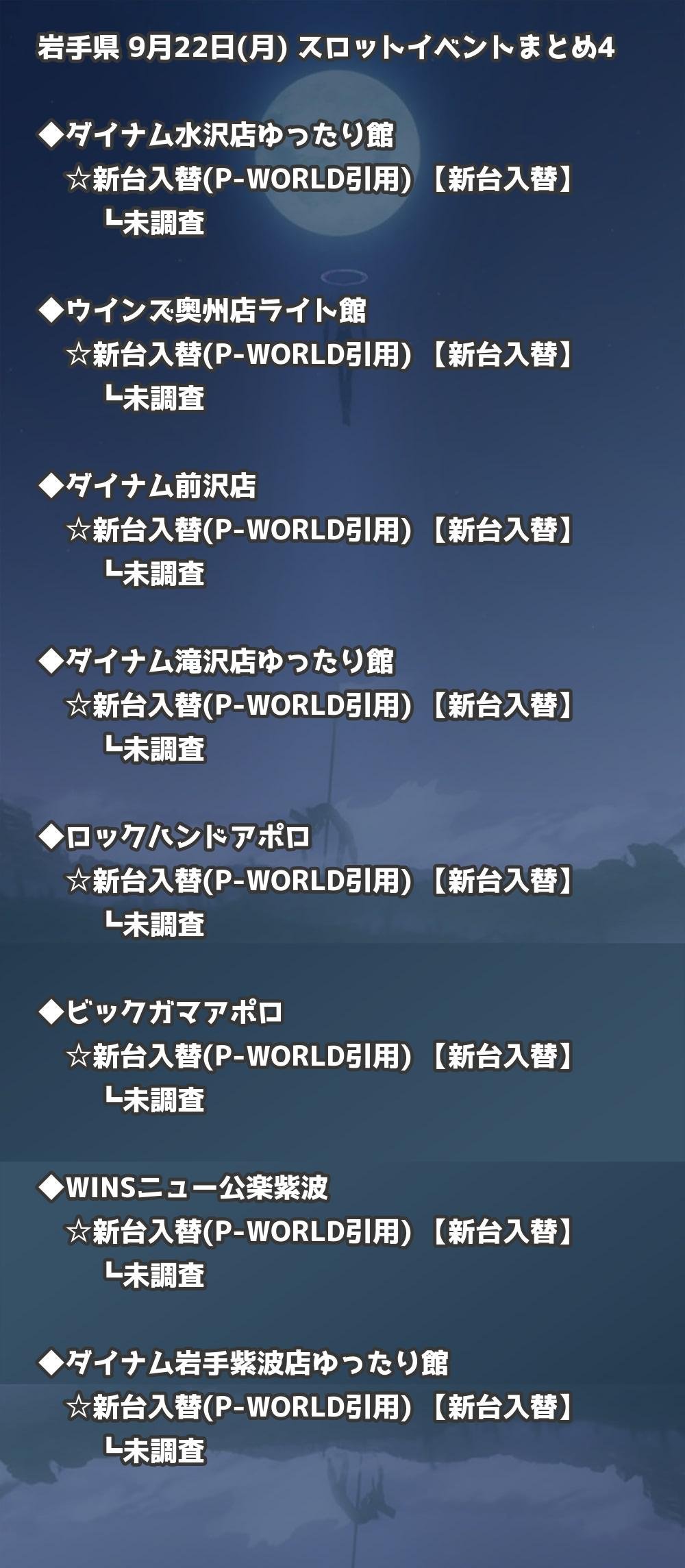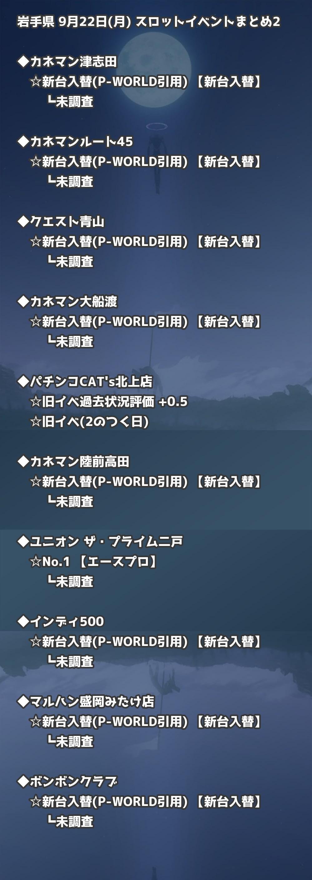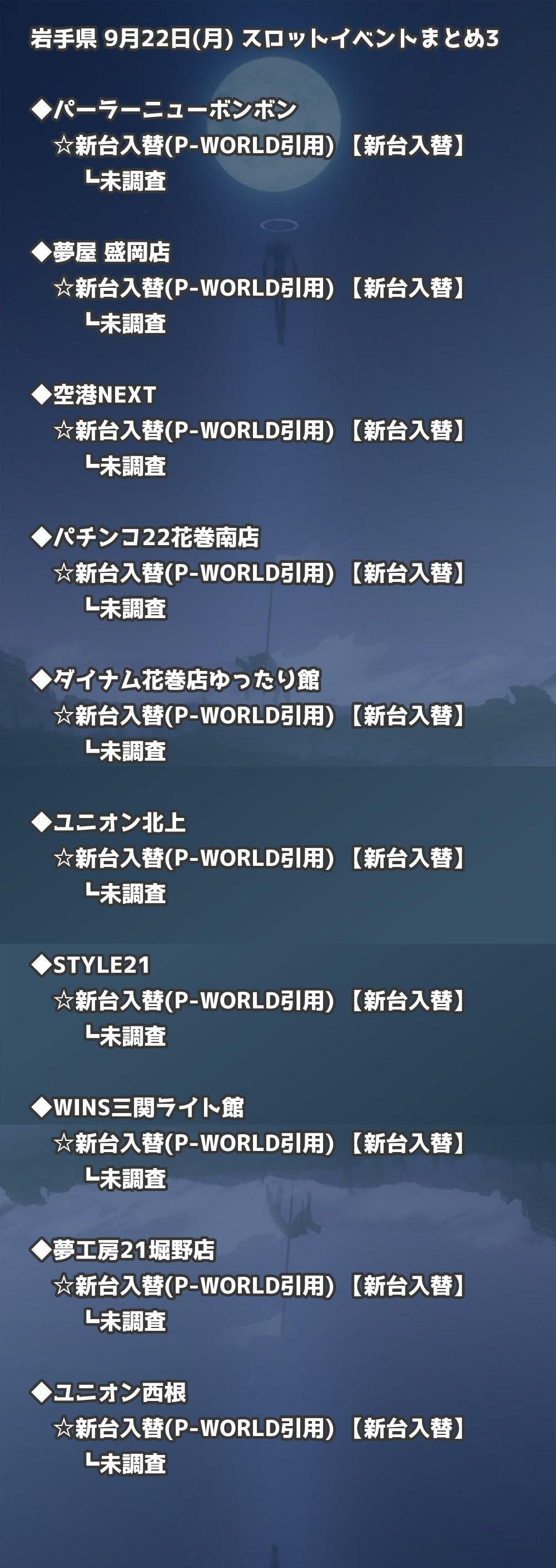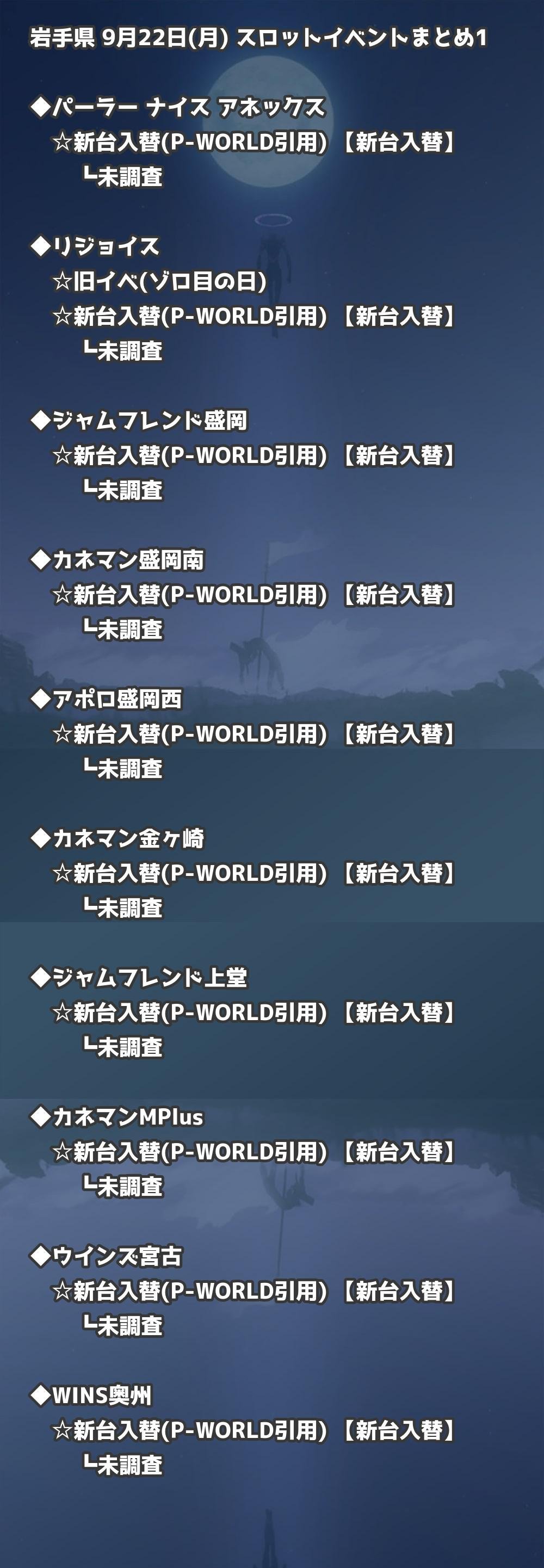 【岩手県】9月22日(月) パチンコホールイベント取材まとめ記事です。