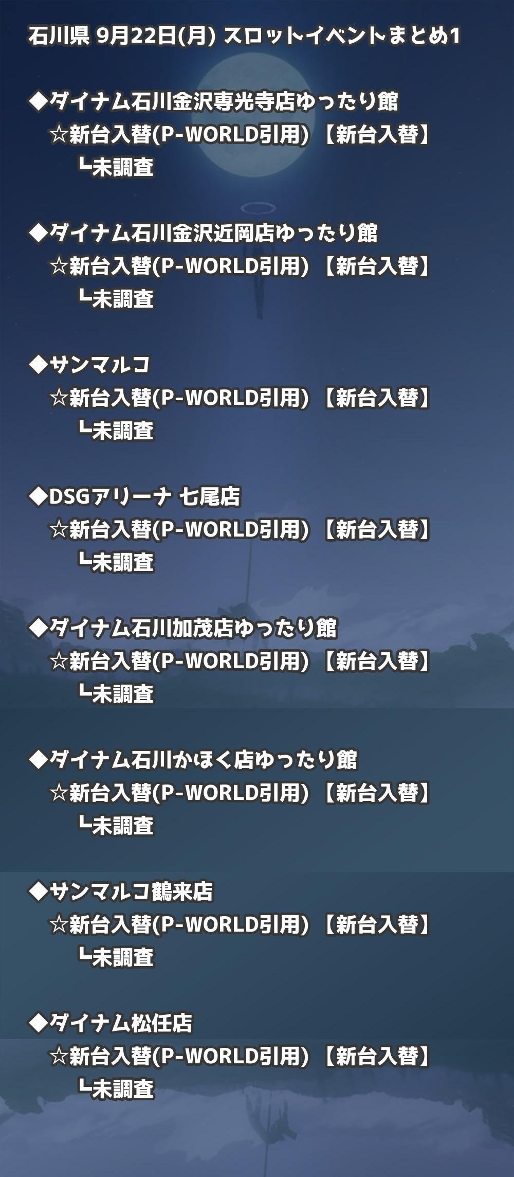 【石川県】9月22日(月) パチンコホールイベント取材まとめ記事です。