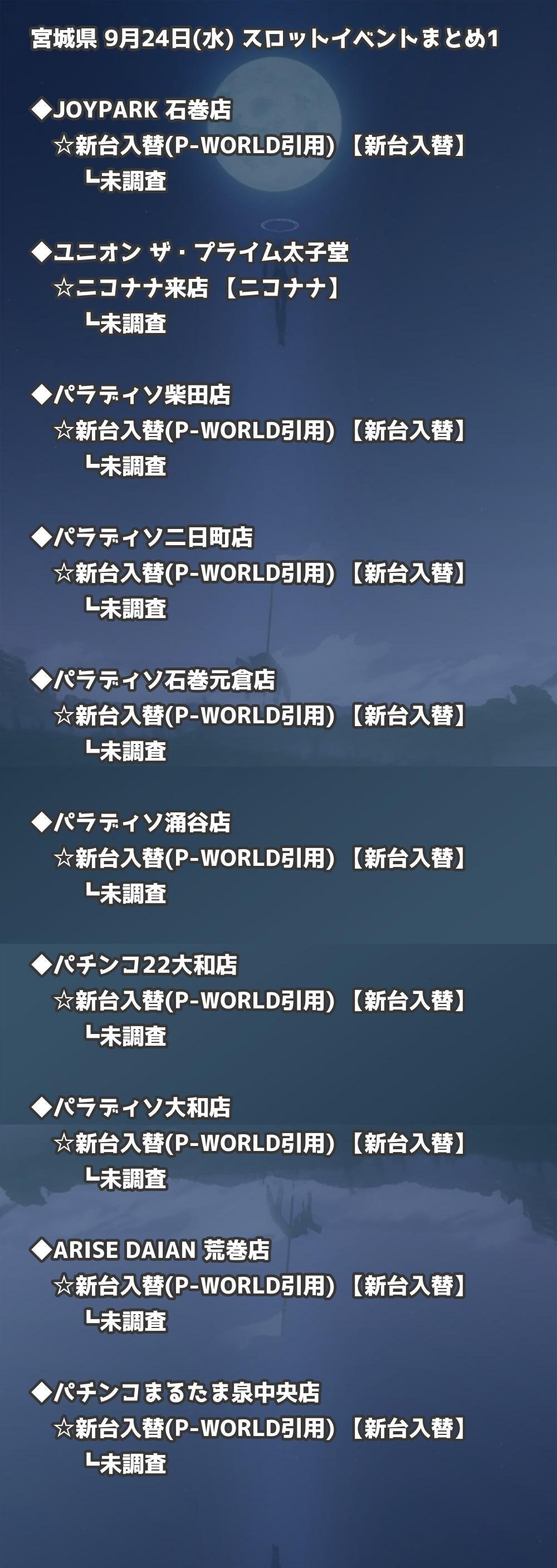 【宮城県】9月24日(水) パチンコホールイベント取材まとめ記事です。