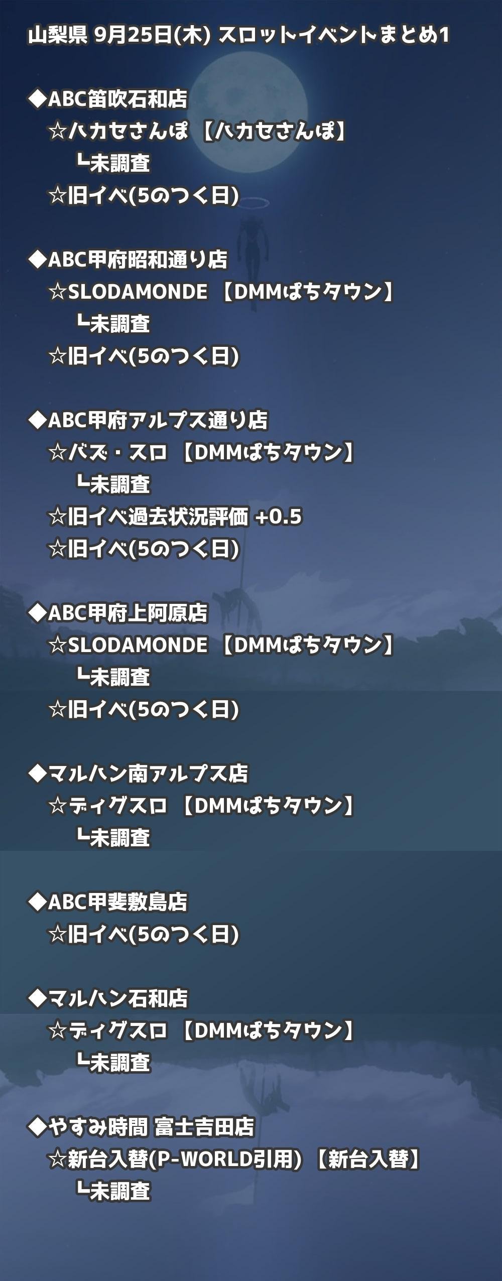 【山梨県】9月25日(木) パチンコホールイベント取材まとめ記事です。