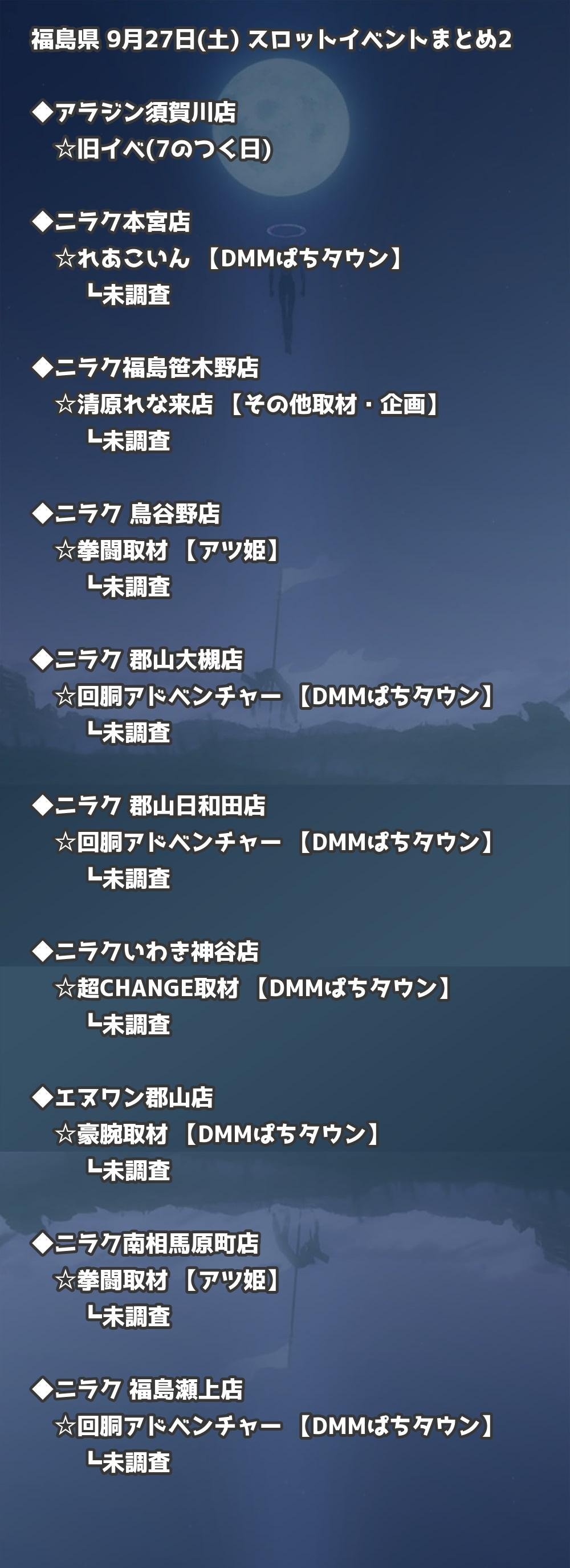 📊 福島県 9月27日(土) 勝てるパチンコ・スロット取材店舗一覧|おすすめ順