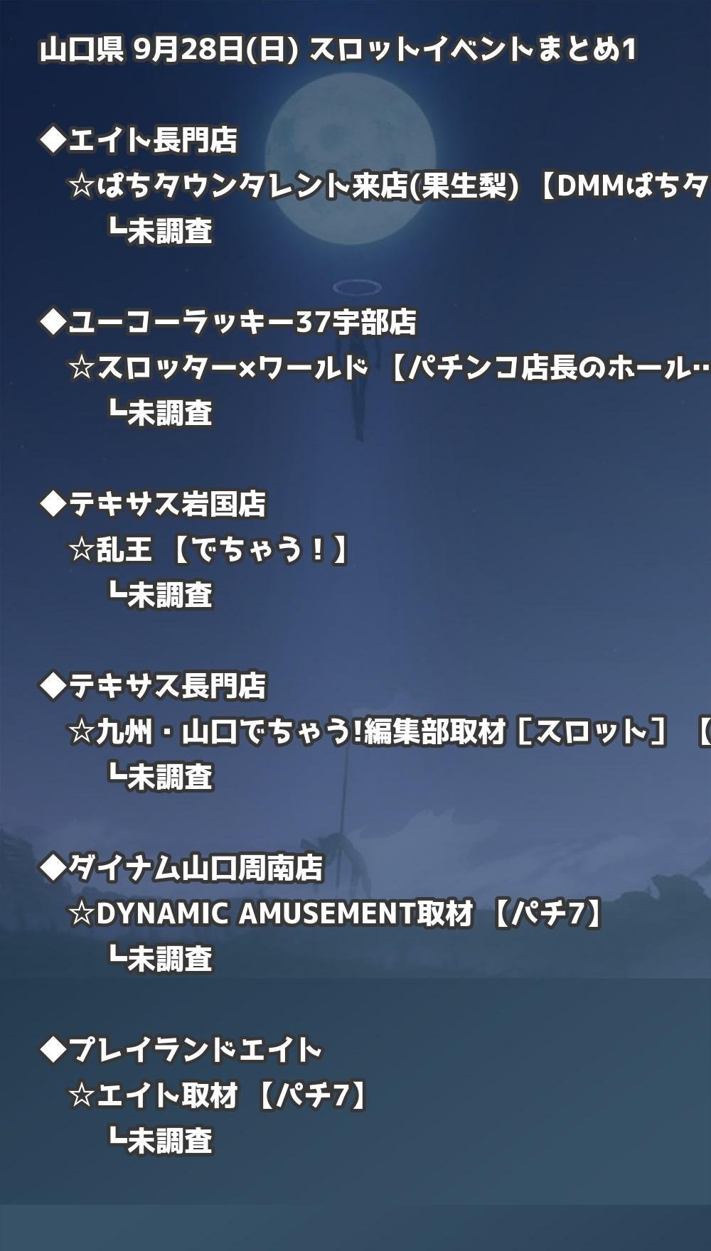 📊 山口県 9月28日(日) 勝てるパチンコ・スロット取材店舗一覧|おすすめ順