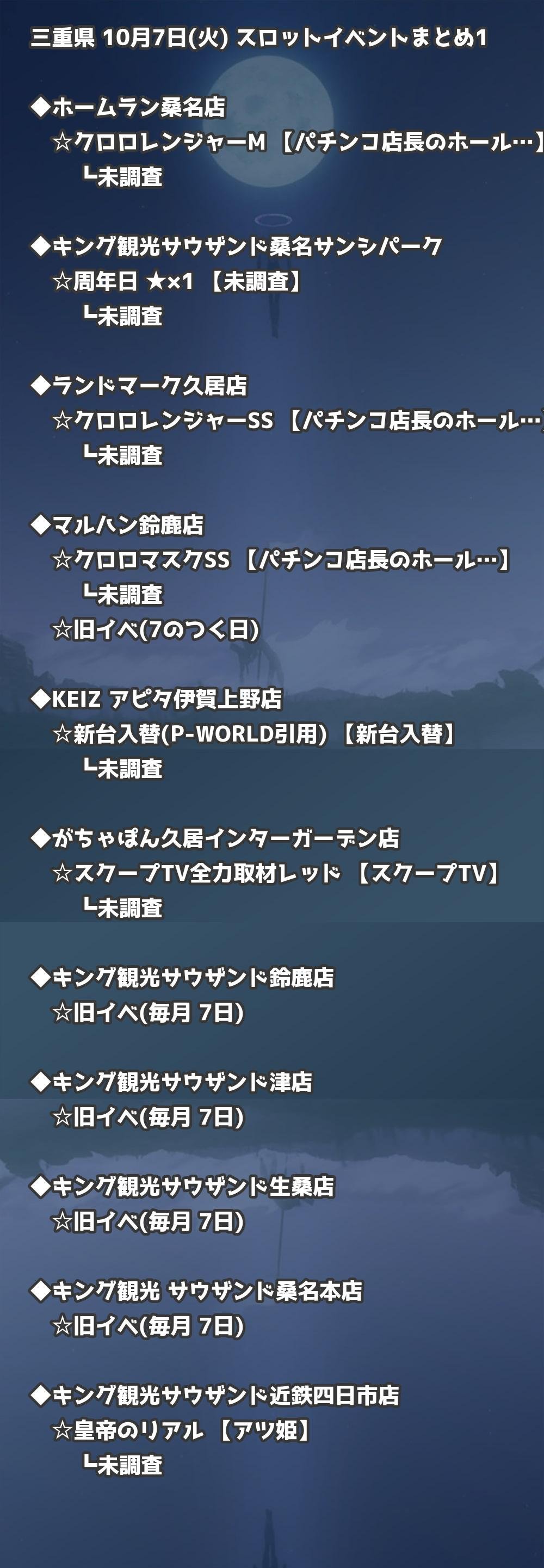 【三重県】10月7日(火) パチンコホールイベント取材まとめ記事です。