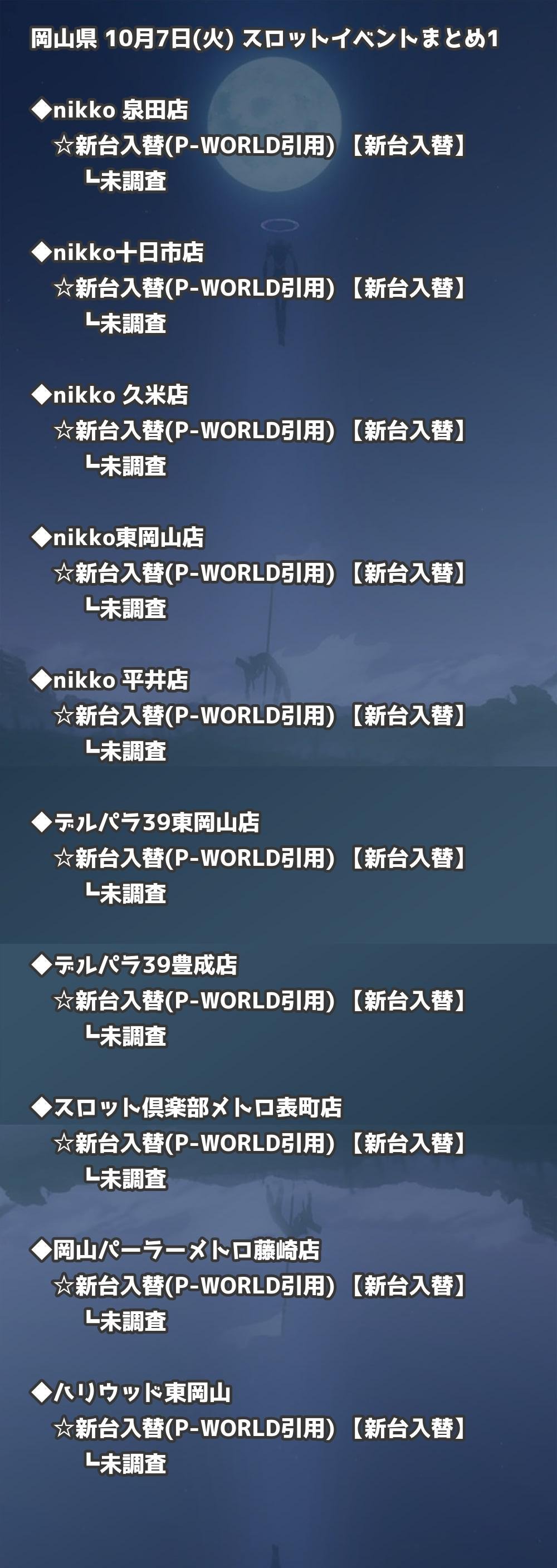 【岡山県】10月7日(火) パチンコホールイベント取材まとめ記事です。