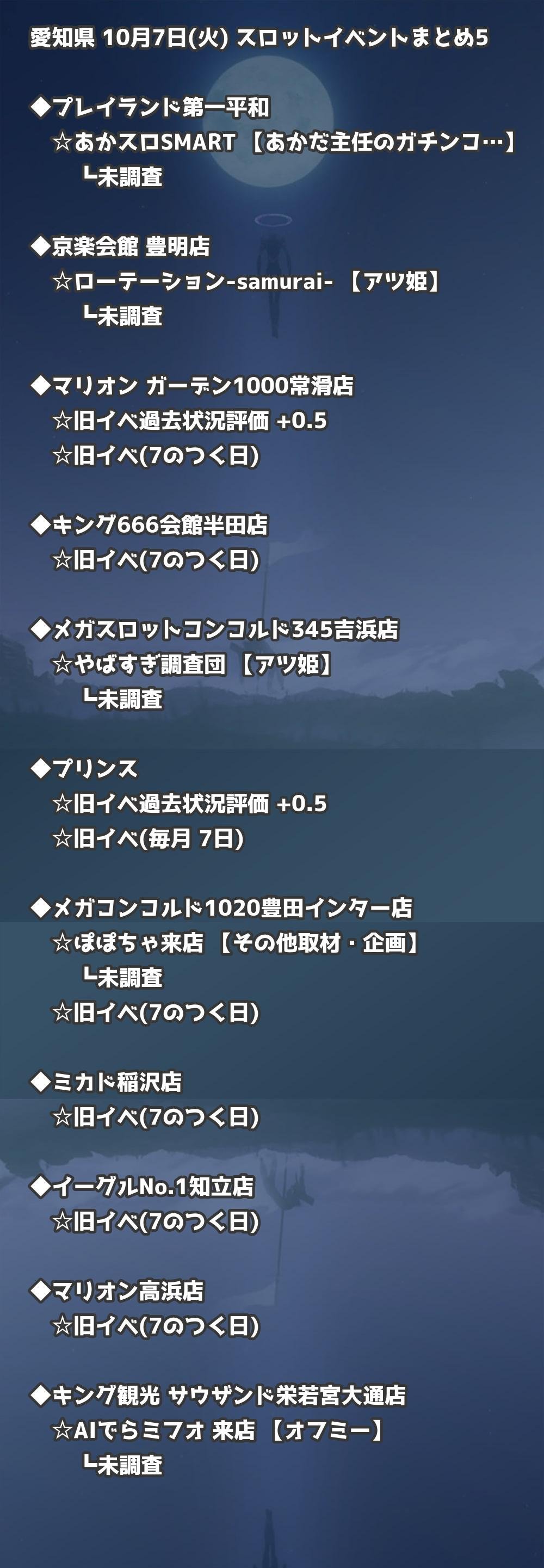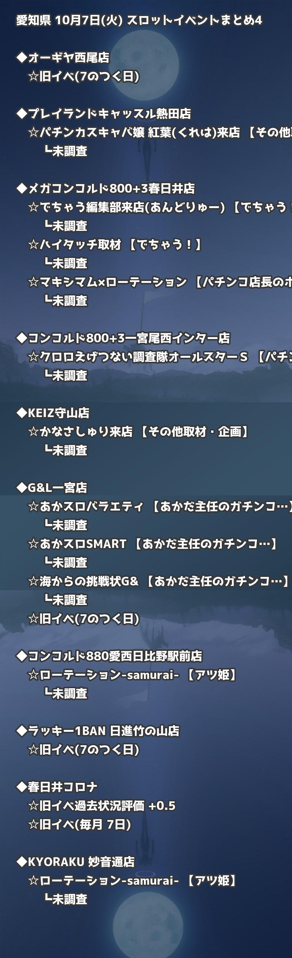 📊 愛知県 10月7日(火) 勝てるパチンコ・スロット取材店舗一覧|おすすめ順