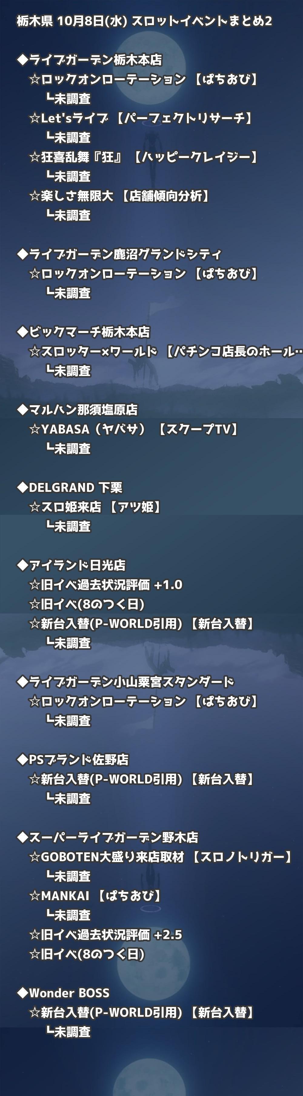 【栃木県】10月8日(水) パチンコホールイベント取材まとめ記事です。
