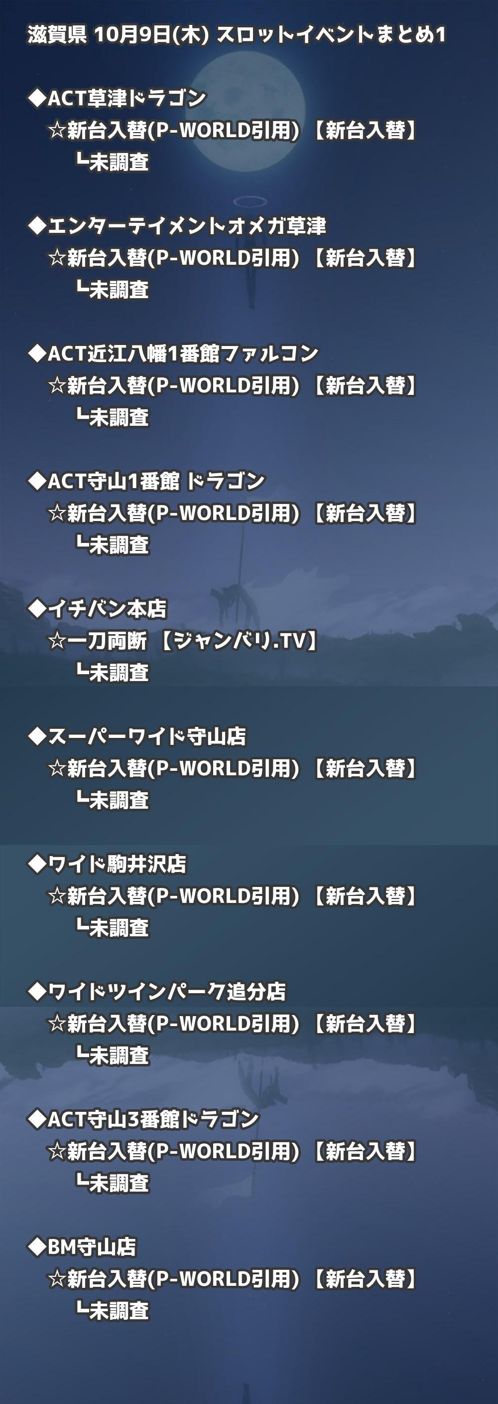 【滋賀県】10月9日(木) パチンコホールイベント取材まとめ記事です。