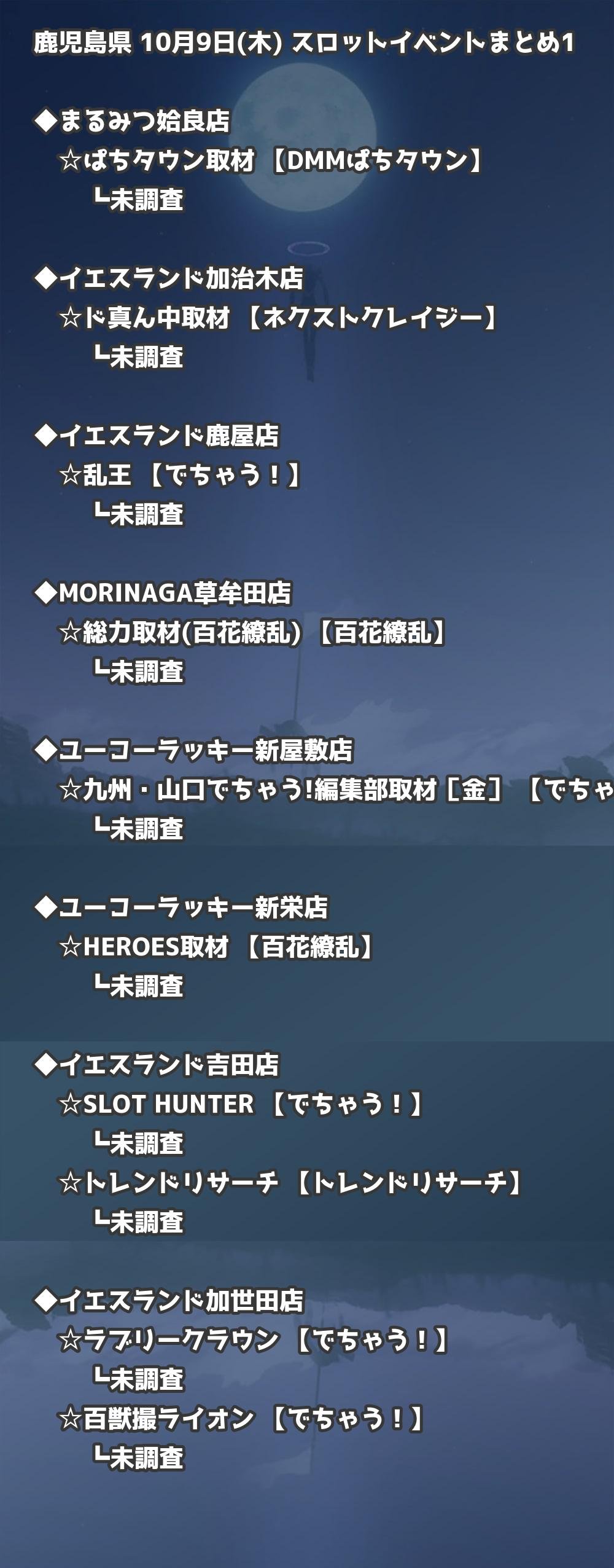 【鹿児島県】10月9日(木) パチンコホールイベント取材まとめ記事です。
