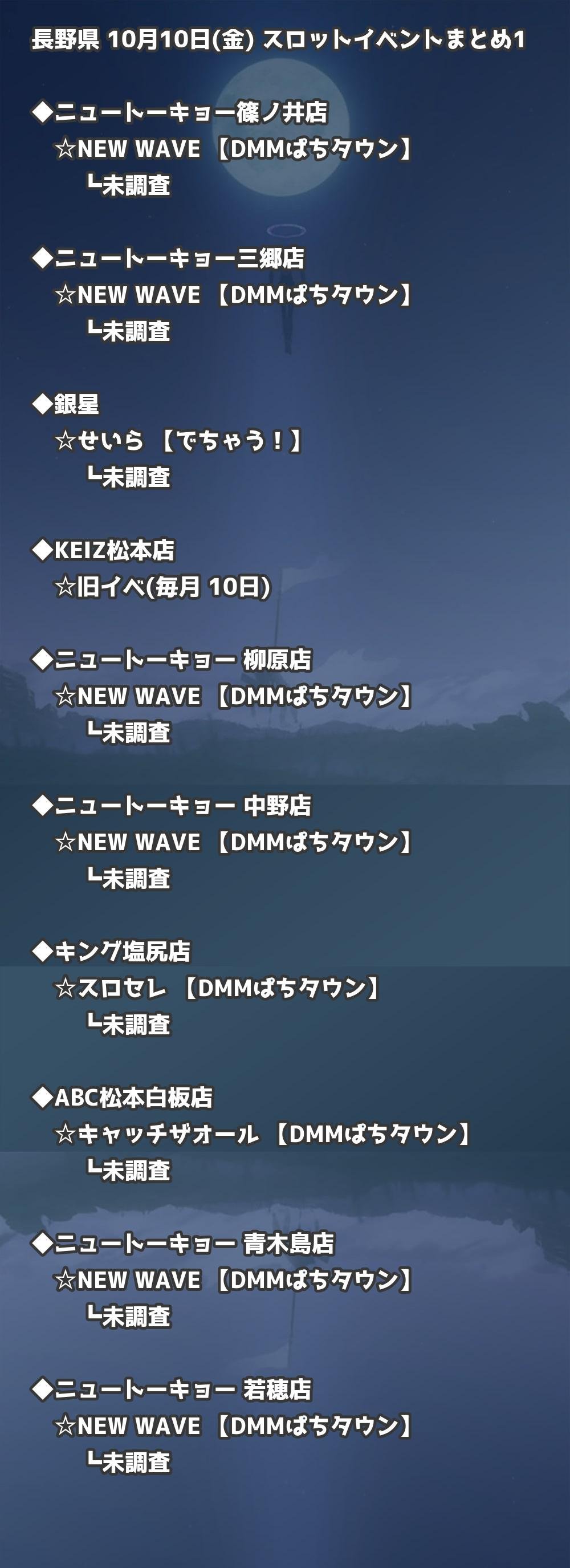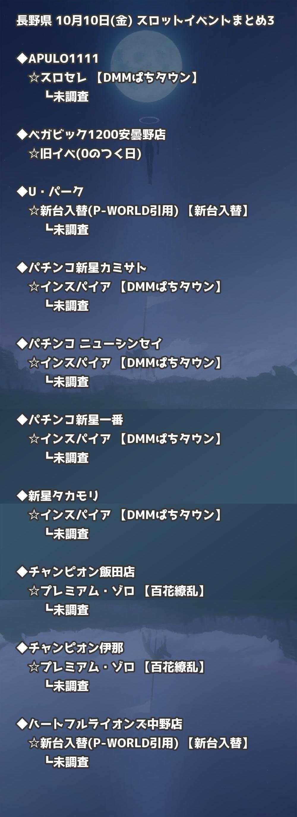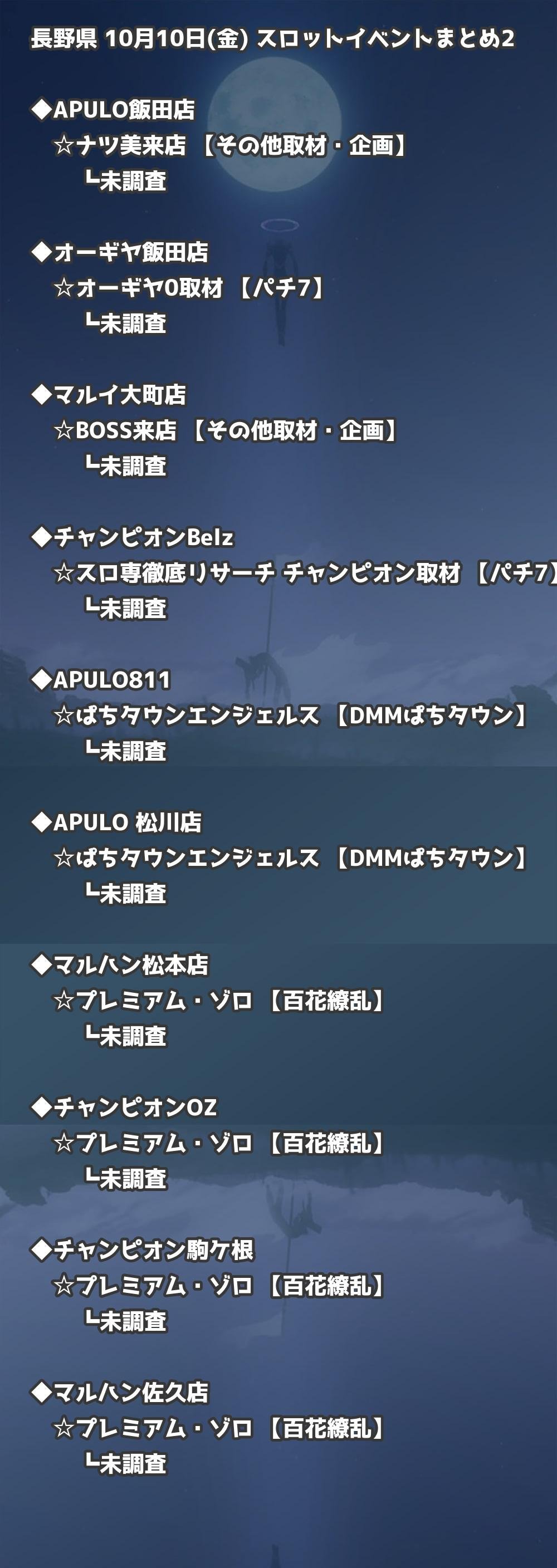 📊 長野県 10月10日(金) 勝てるパチンコ・スロット取材店舗一覧|おすすめ順