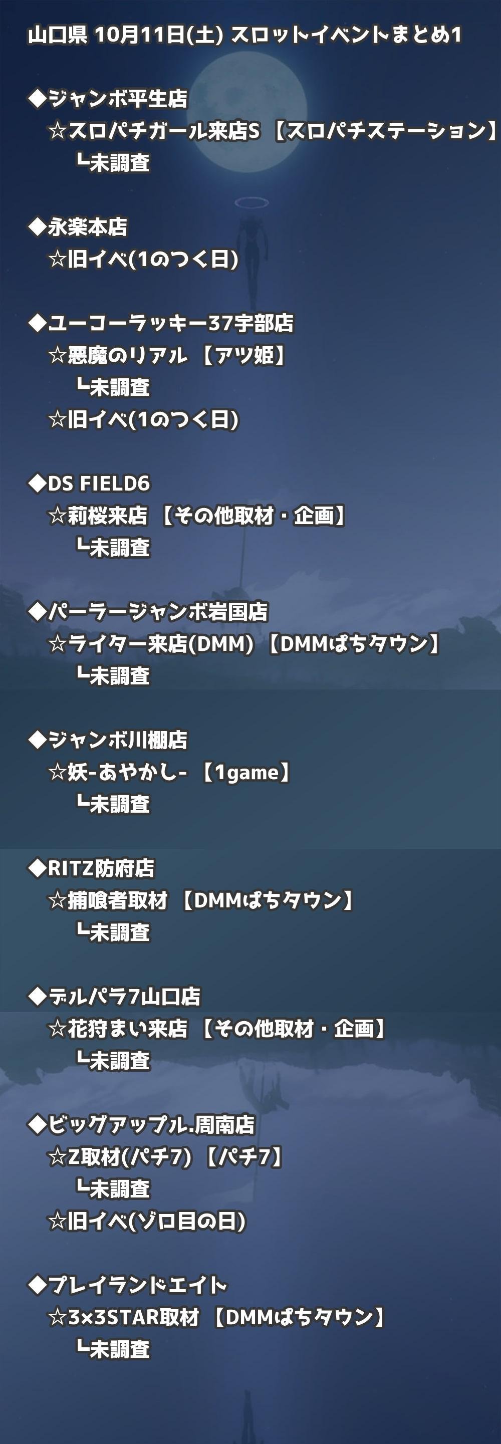 📊 山口県 10月11日(土) 勝てるパチンコ・スロット取材店舗一覧|おすすめ順