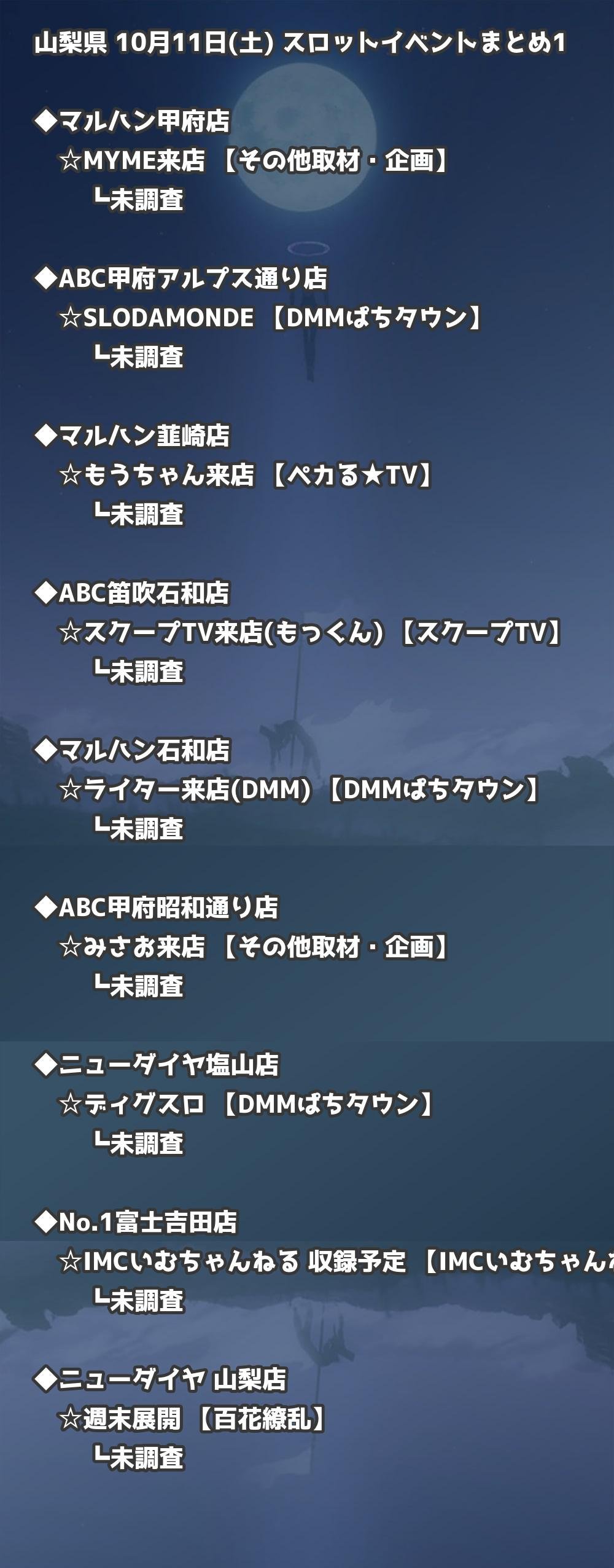 📊 山梨県 10月11日(土) 勝てるパチンコ・スロット取材店舗一覧|おすすめ順