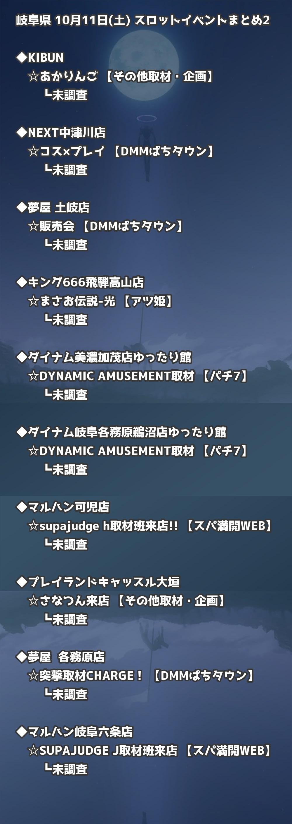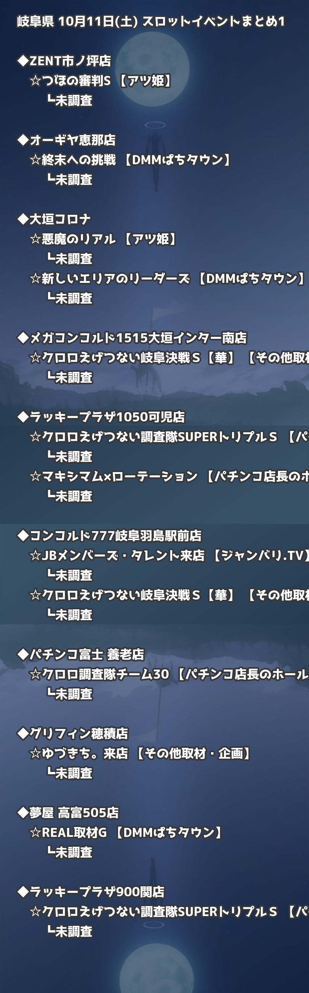 📊 岐阜県 10月11日(土) 勝てるパチンコ・スロット取材店舗一覧|おすすめ順