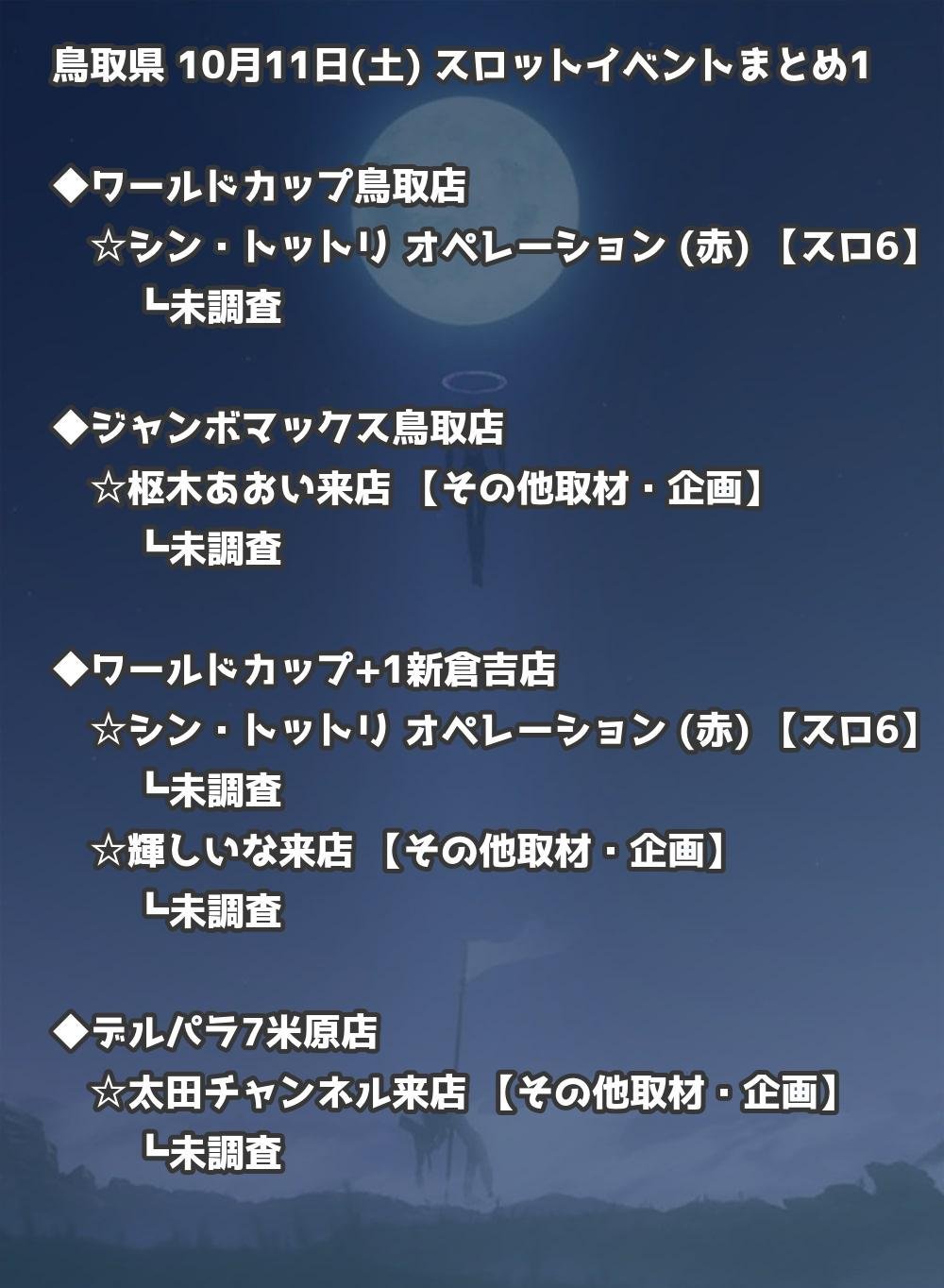 📊 鳥取県 10月11日(土) 勝てるパチンコ・スロット取材店舗一覧|おすすめ順