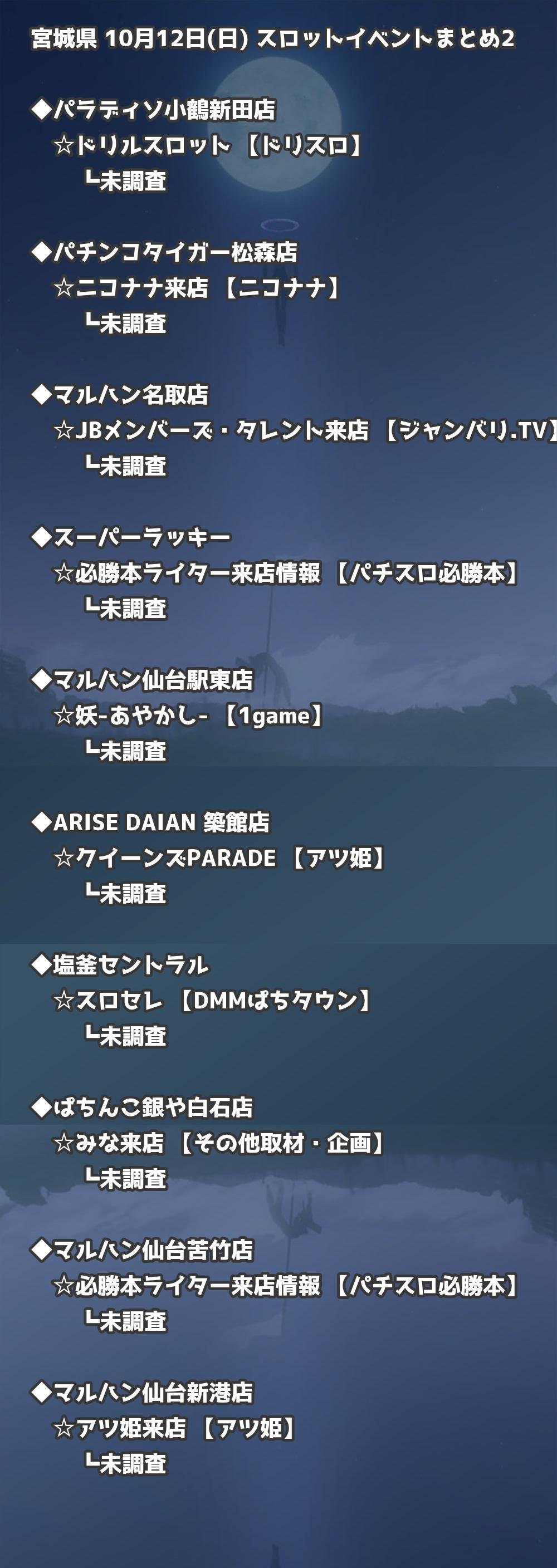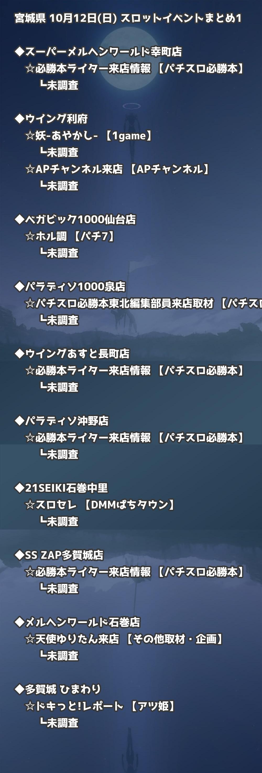 📊 宮城県 10月12日(日) 勝てるパチンコ・スロット取材店舗一覧|おすすめ順