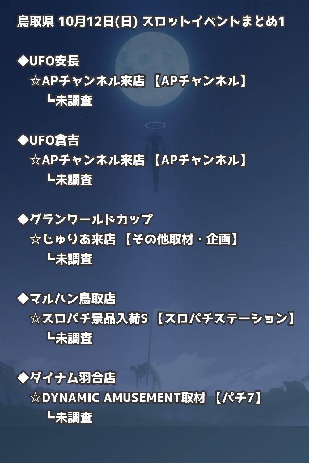 【鳥取県】10月12日(日) パチンコホールイベント取材まとめ記事です。