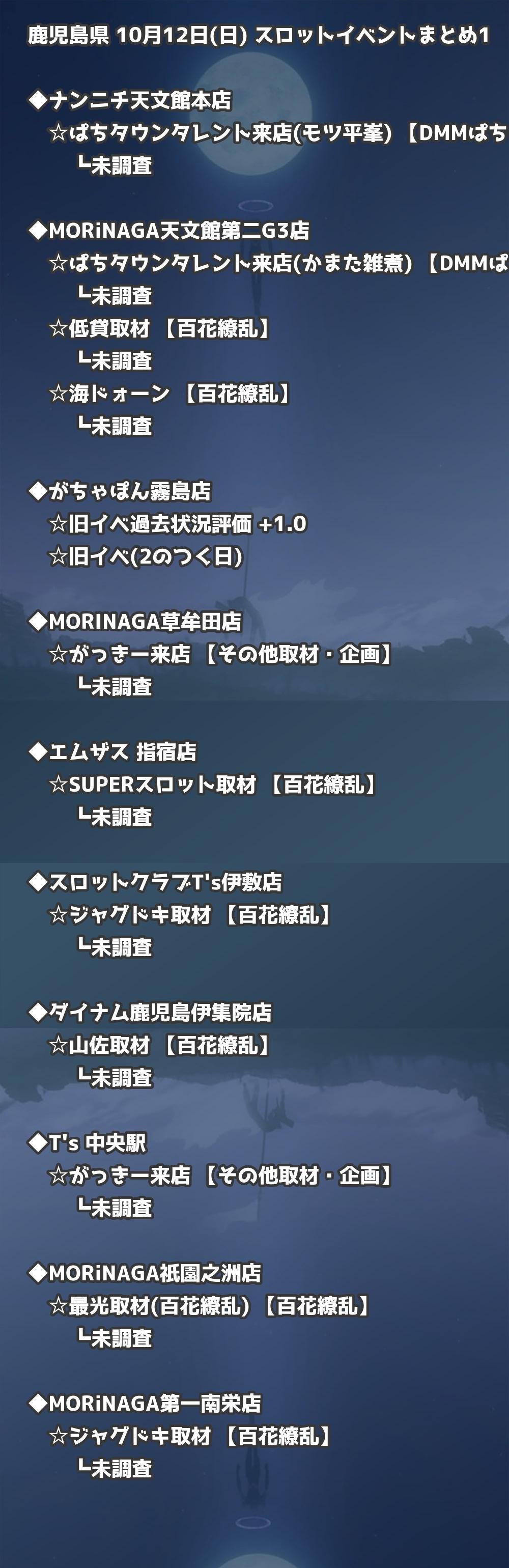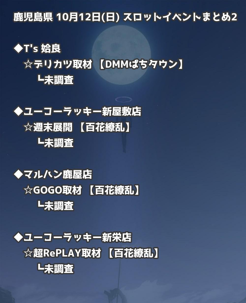 【鹿児島県】10月12日(日) パチンコホールイベント取材まとめ記事です。