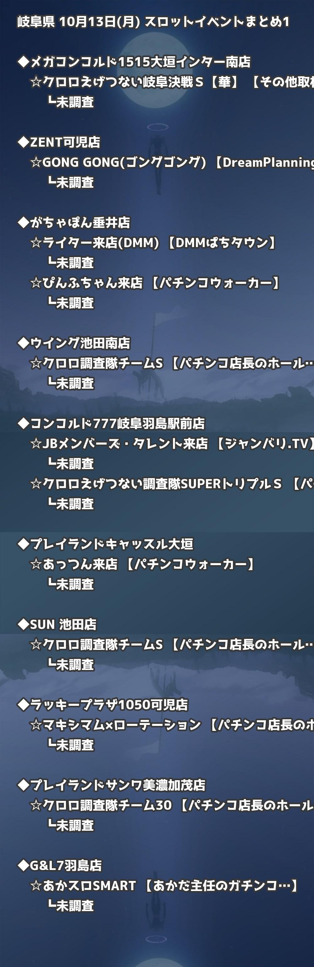 📊 岐阜県 10月13日(月) 勝てるパチンコ・スロット取材店舗一覧|おすすめ順