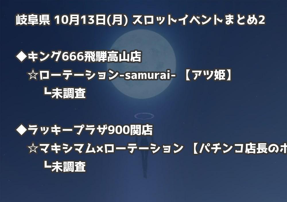 【岐阜県】10月13日(月) パチンコホールイベント取材まとめ記事です。