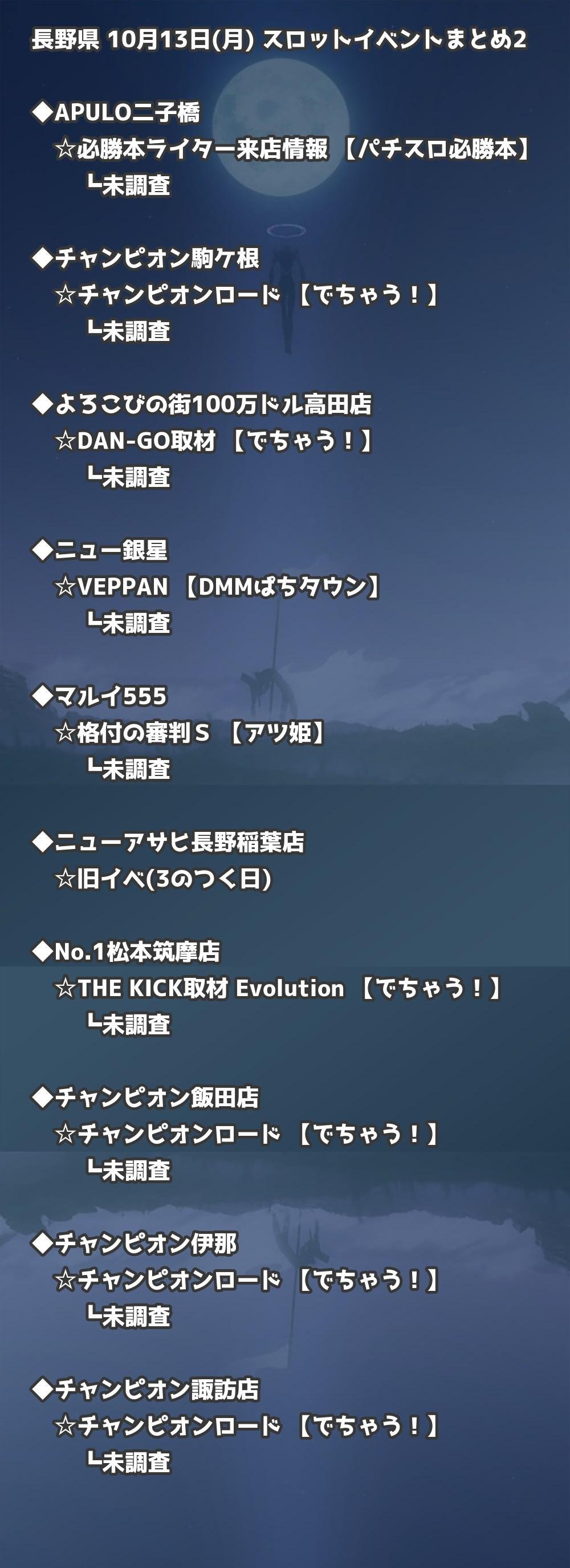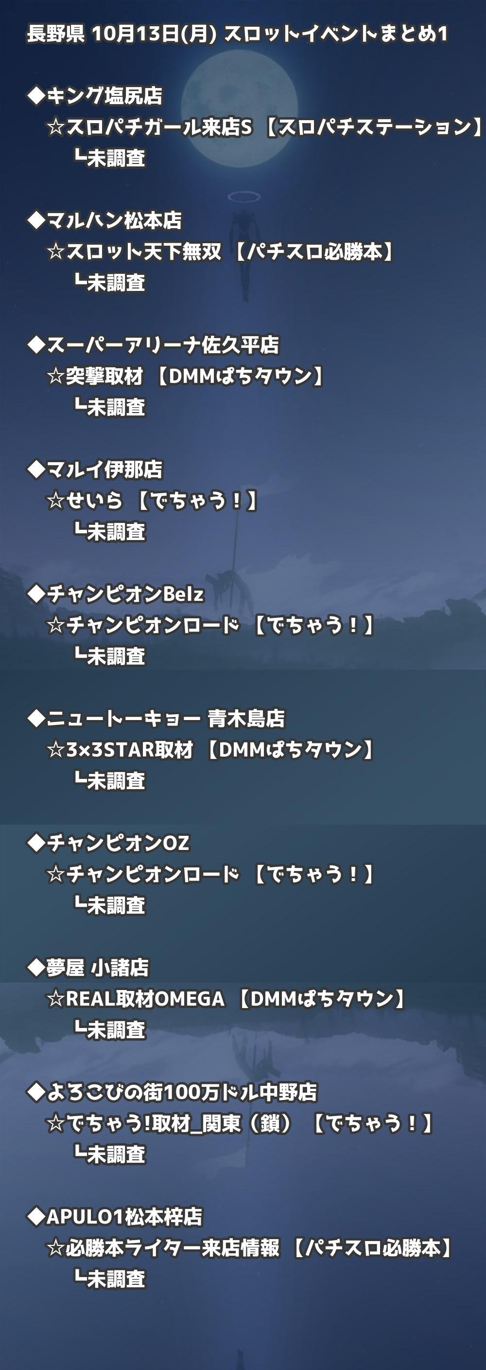 【長野県】10月13日(月) パチンコホールイベント取材まとめ記事です。
