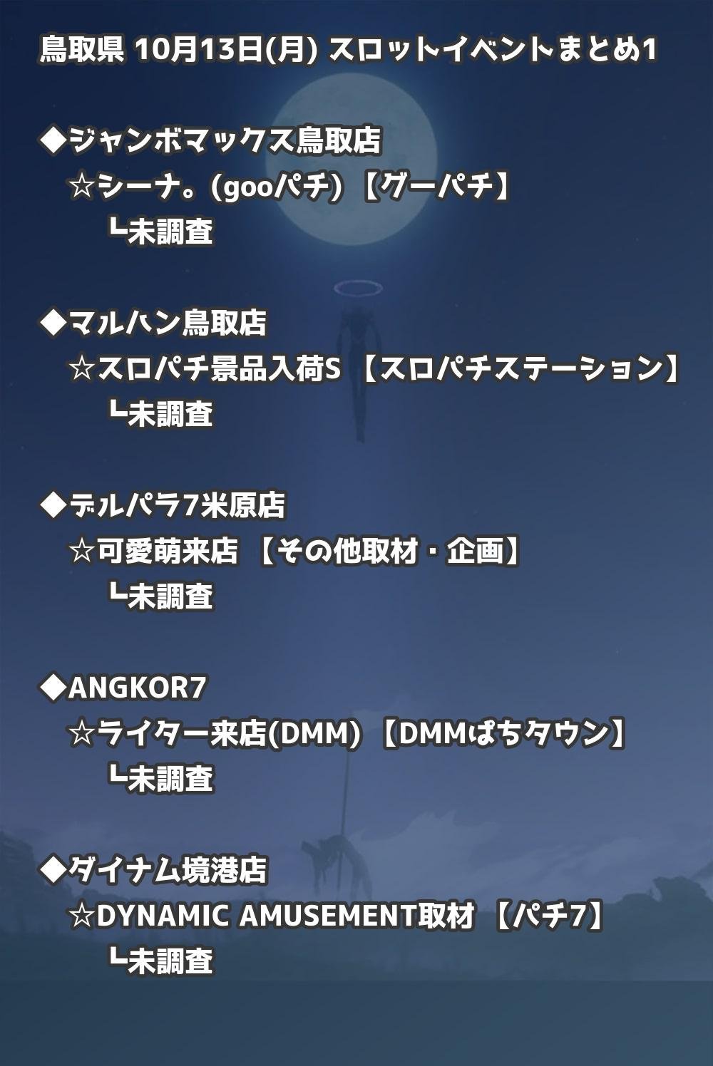 【鳥取県】10月13日(月) パチンコホールイベント取材まとめ記事です。