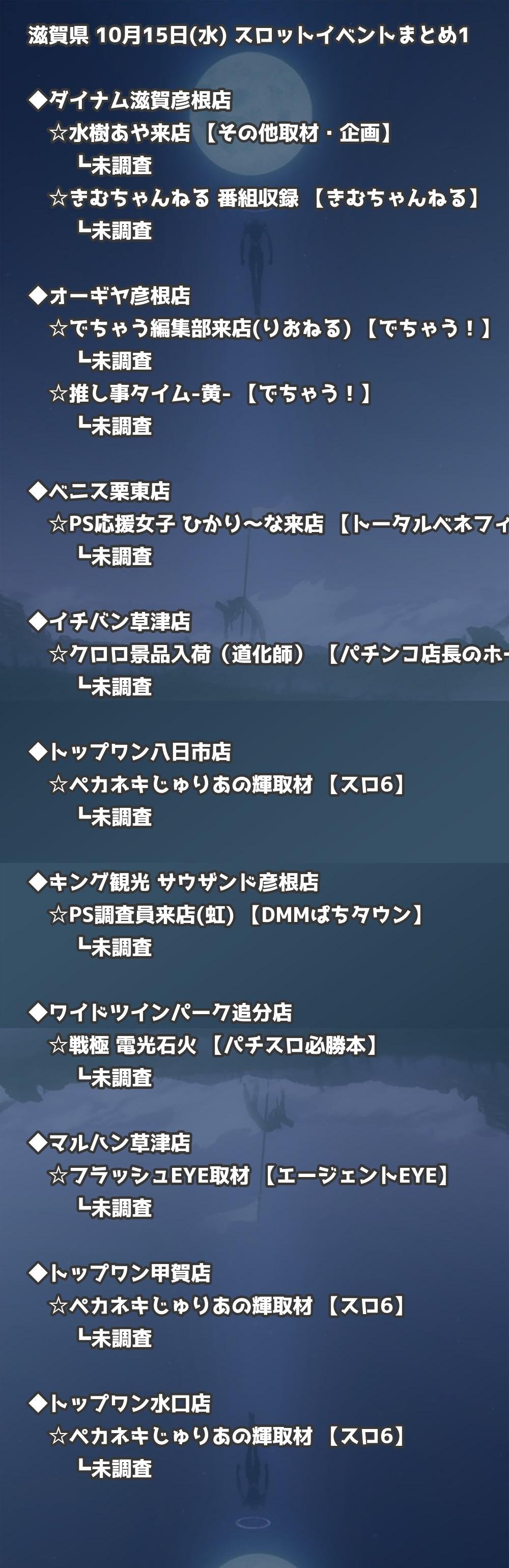 📊 滋賀県 10月15日(水) 勝てるパチンコ・スロット取材店舗一覧|おすすめ順