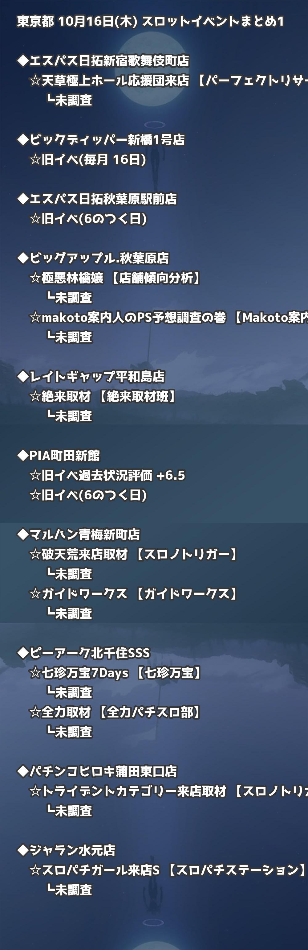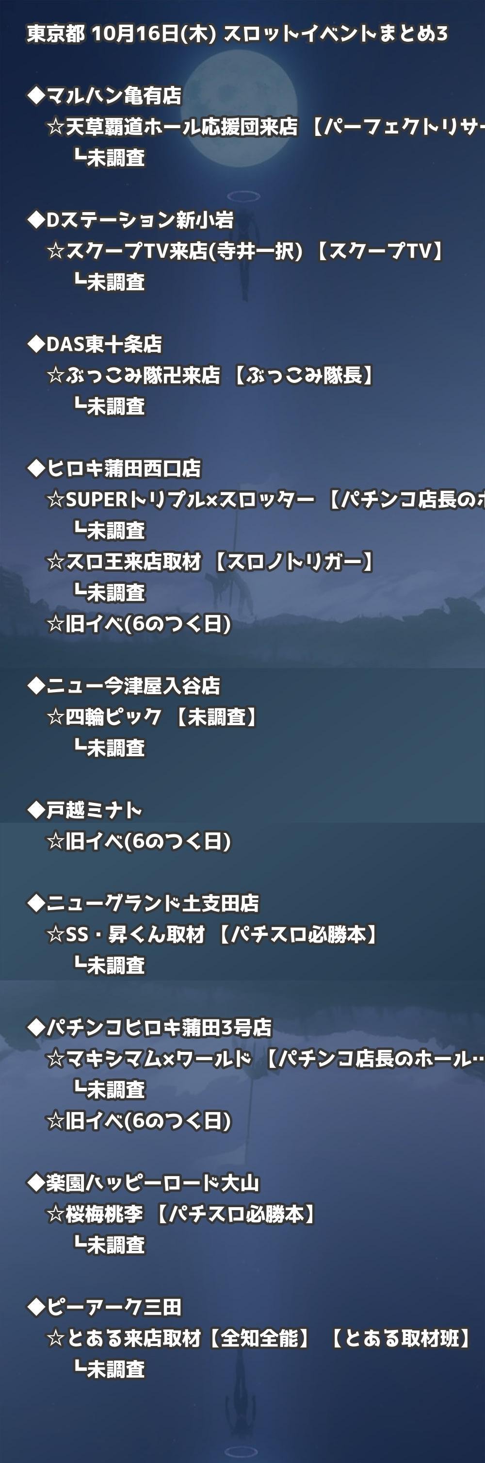 📊 東京都 10月16日(木) 勝てるパチンコ・スロット取材店舗一覧|おすすめ順