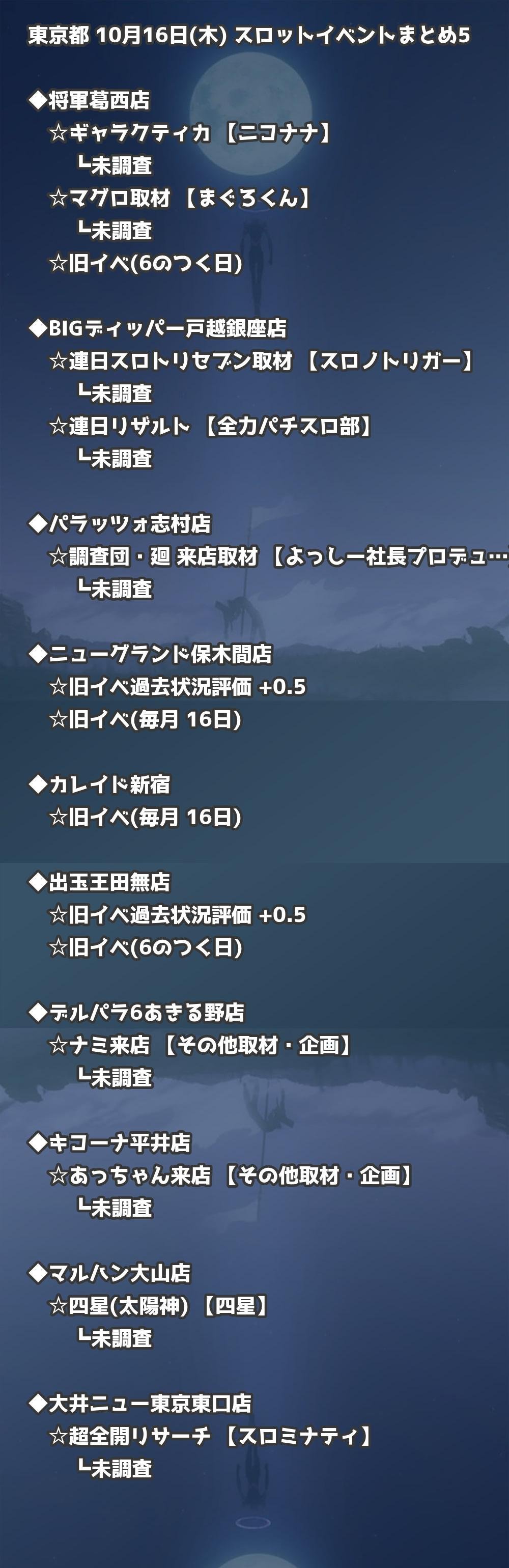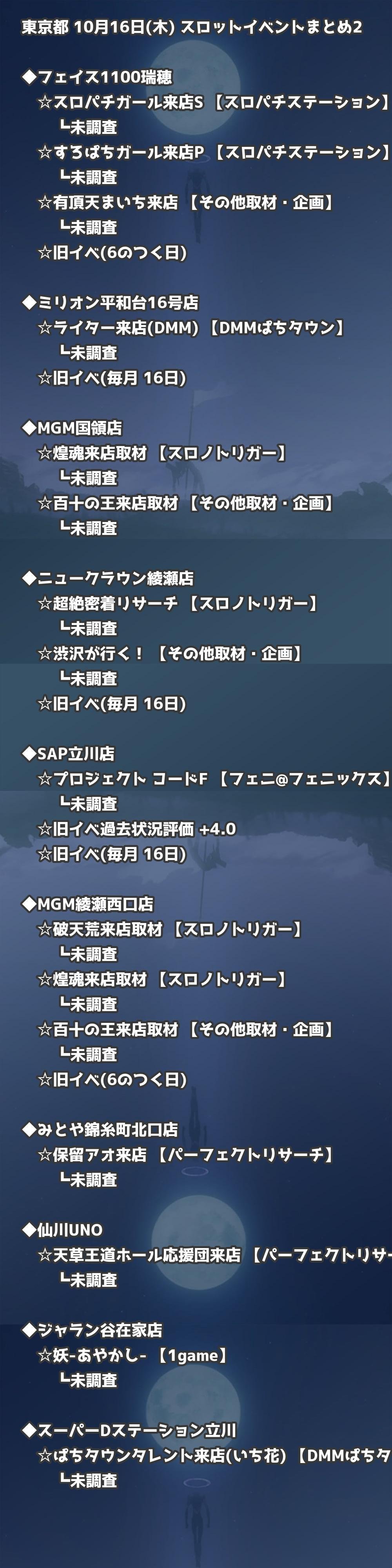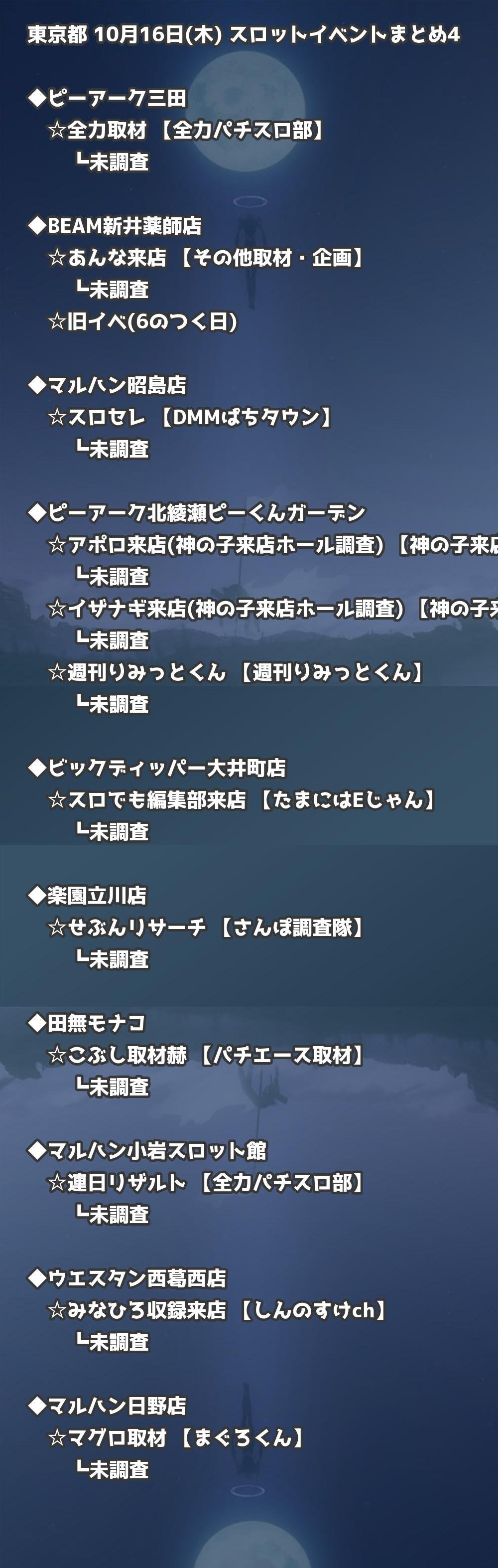 【東京都】10月16日(木) パチンコホールイベント取材まとめ記事です。