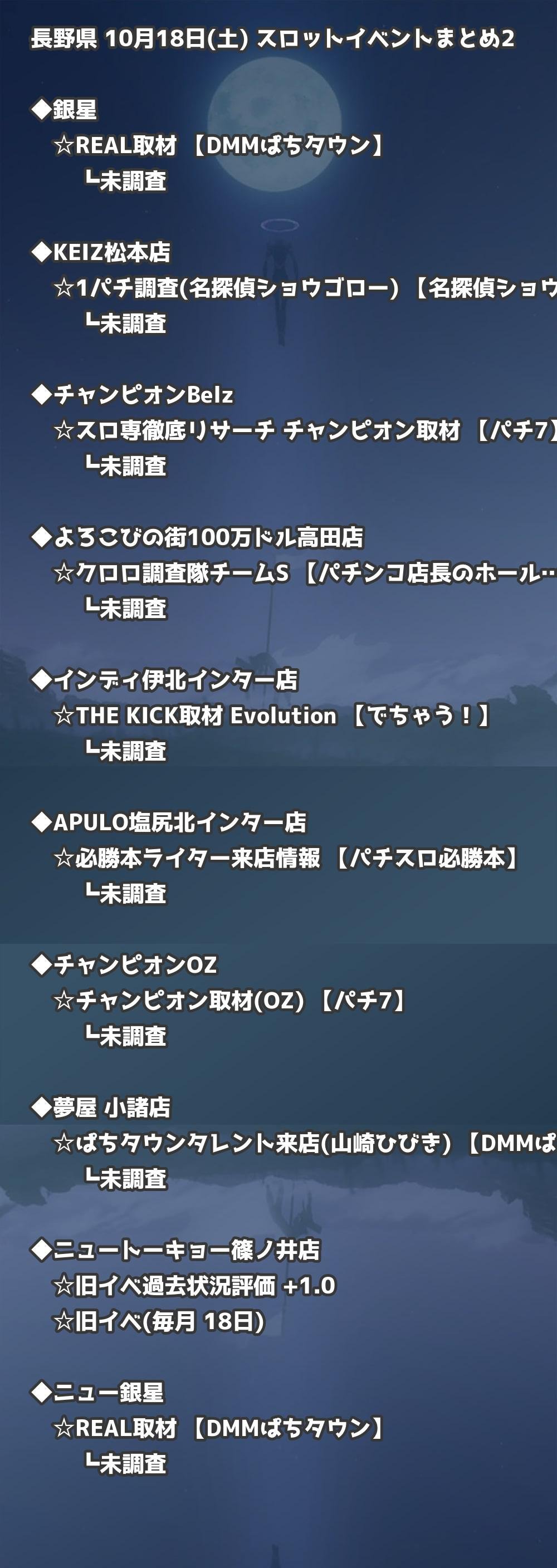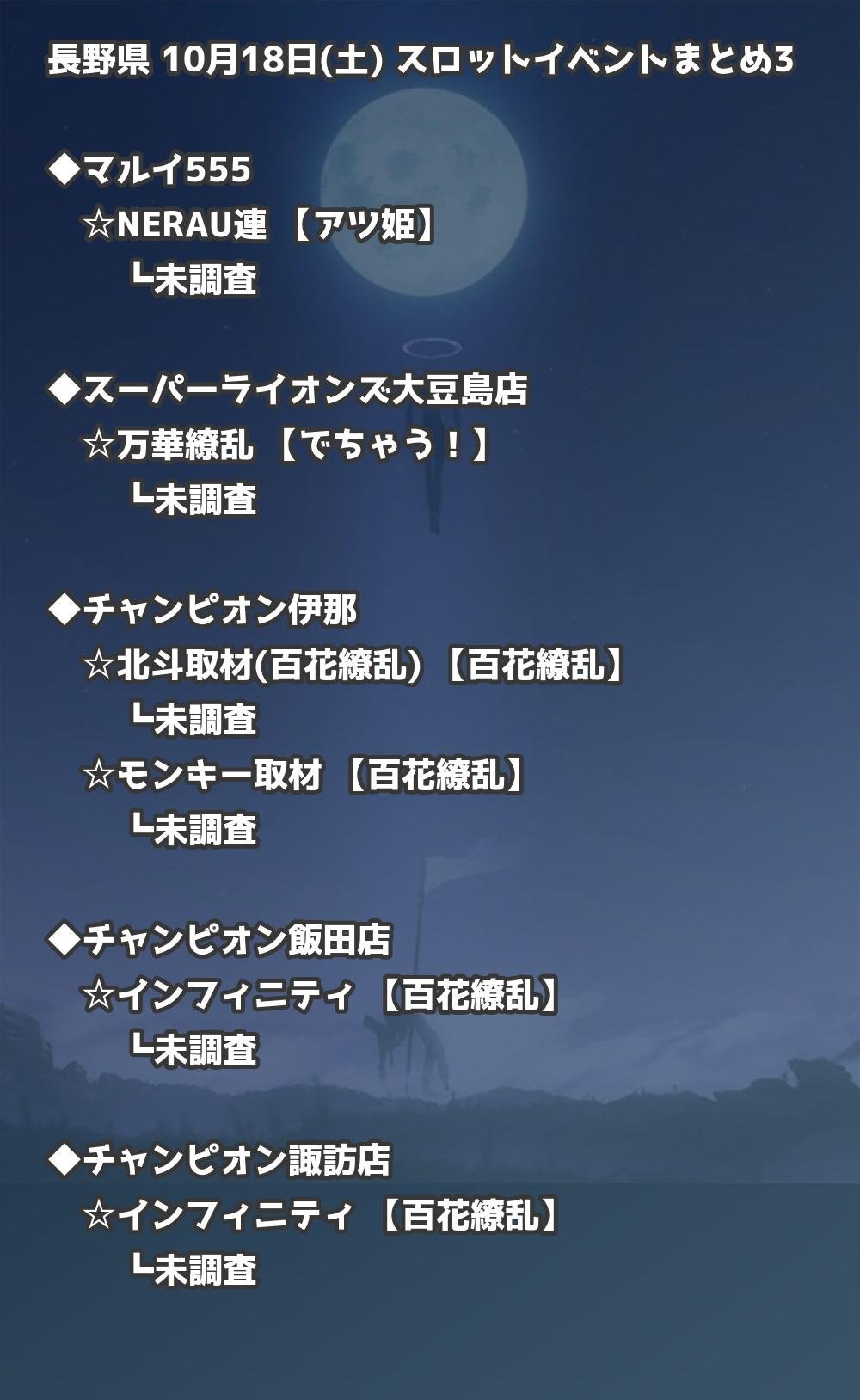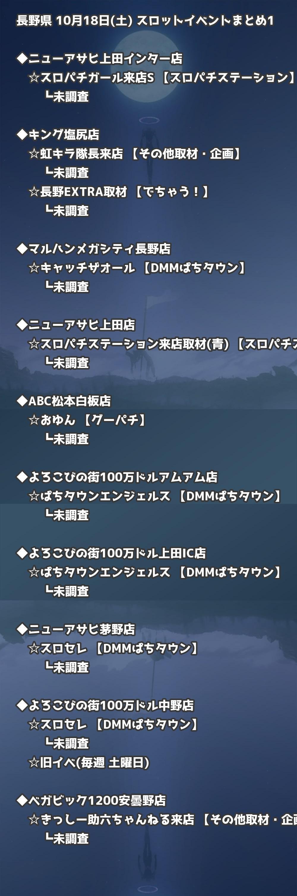 📊 長野県 10月18日(土) 勝てるパチンコ・スロット取材店舗一覧|おすすめ順